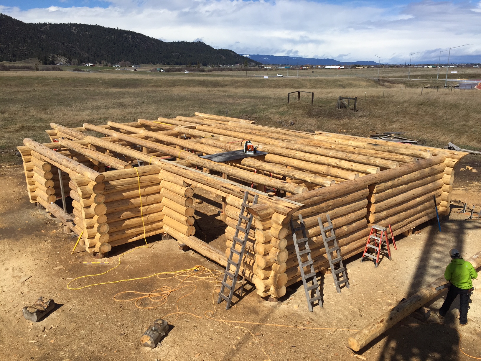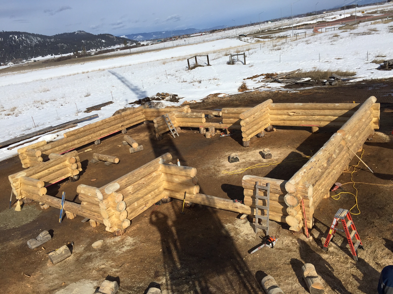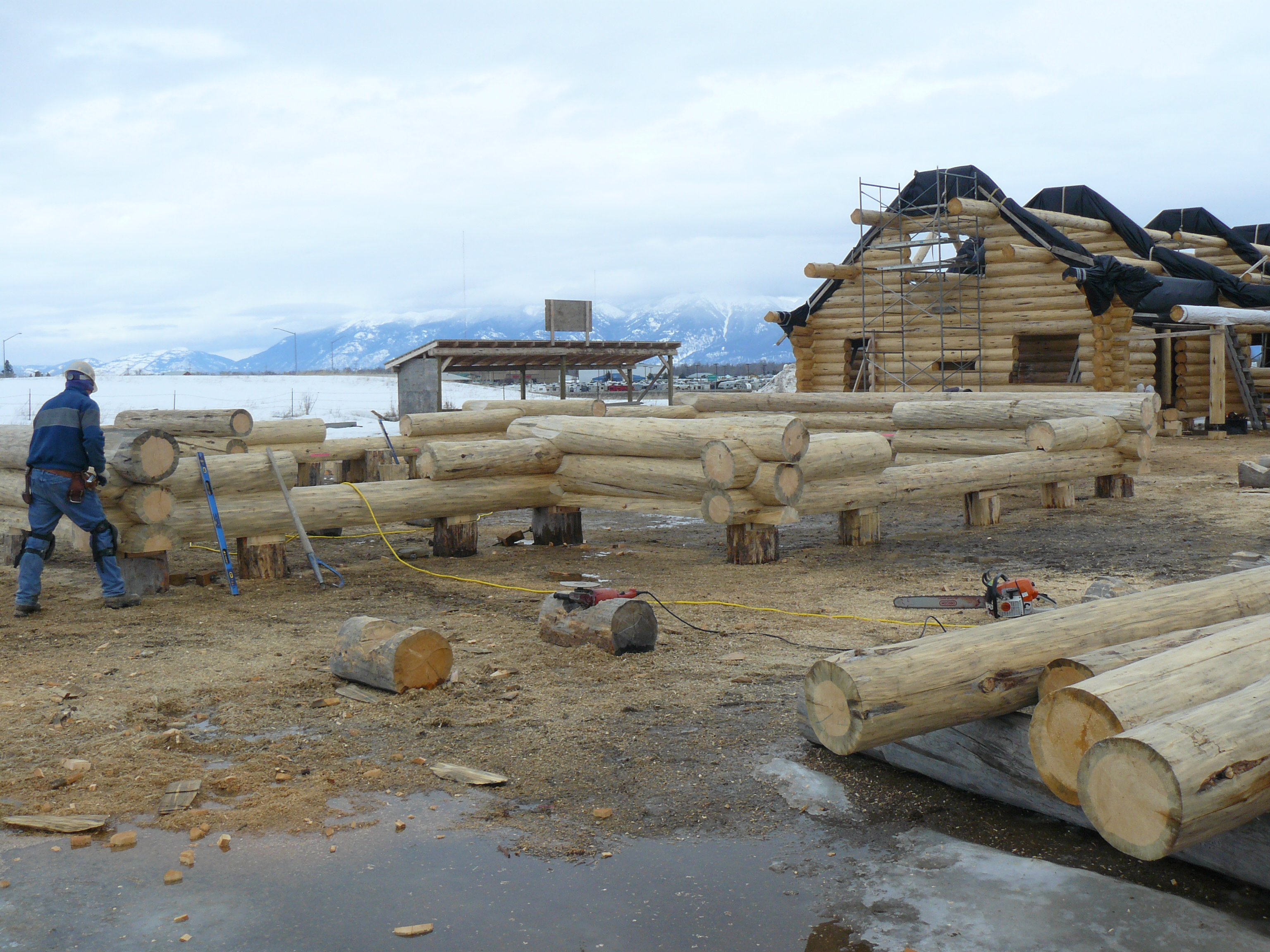We have begun construction of a beautiful log home for Kim and Greg Ingram. This home is a modified version of our MLH-034 plan provided by Jake’s Drafting Service. Kim and Greg have added their own touches to this design by adding additional loft space for a nice bunk room for guests and assorted “ski-bums”; as their new log home will be located near Durango Colorado. Follow along as the talented team of log-smiths hand carve each log to create this one of a kind mountain retreat!