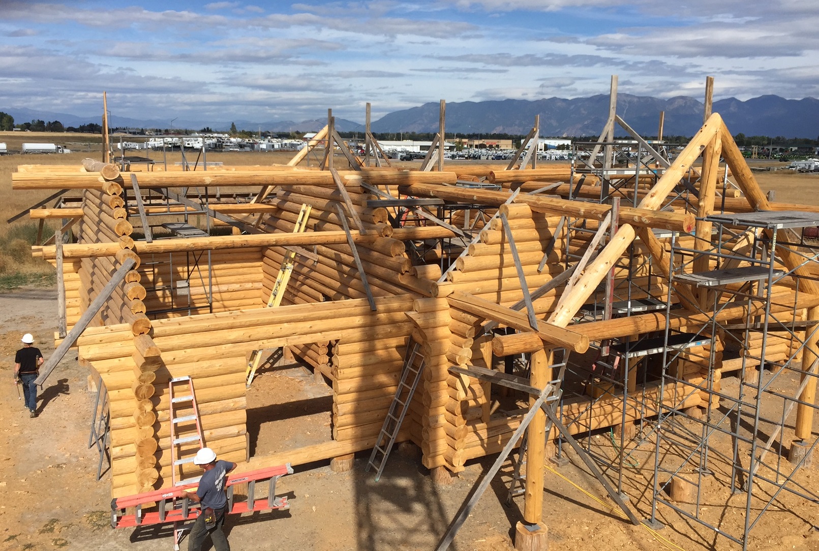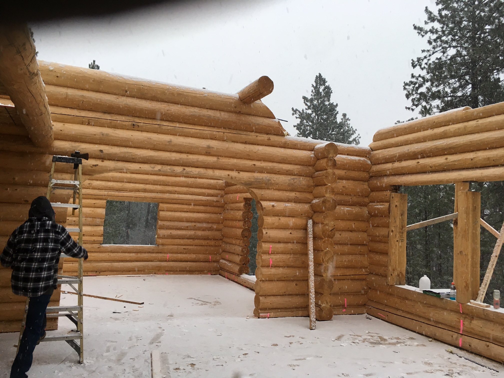 In the spring of 2014 we had the pleasure of meeting Kasey and Amanda to discuss the possibility of building a new log home. They were residing in a log home they had built several years ago, but with growing family and a desire to find a spot near Spokane Washington with a country feel. Much needed done before the vision could become reality, the existing home needed some lovin’ prior to listing for sale, the right property needed to be found and a plan for the new home needed to be found or designed. As sometimes happens, life can slow down dreams but here we are a mere 4 years later beginning construction of their new home. A plan was found that just needed some ‘tweaks” to fit the vision and the new property. Working with Corey Hills, Montana Log Homes in house draftsman, Kasey and Amanda’s custom home design is finalized; if all goes well it should be under roof before the snow flies again! Follow along as the craftsmen at Montana Log Homes hand scribe these Western Red Cedar logs into another one of a kind log home for Kasey and Amanda.