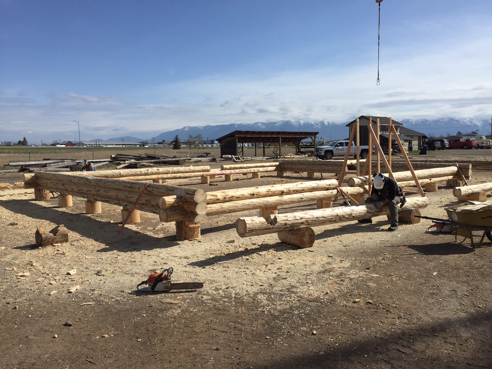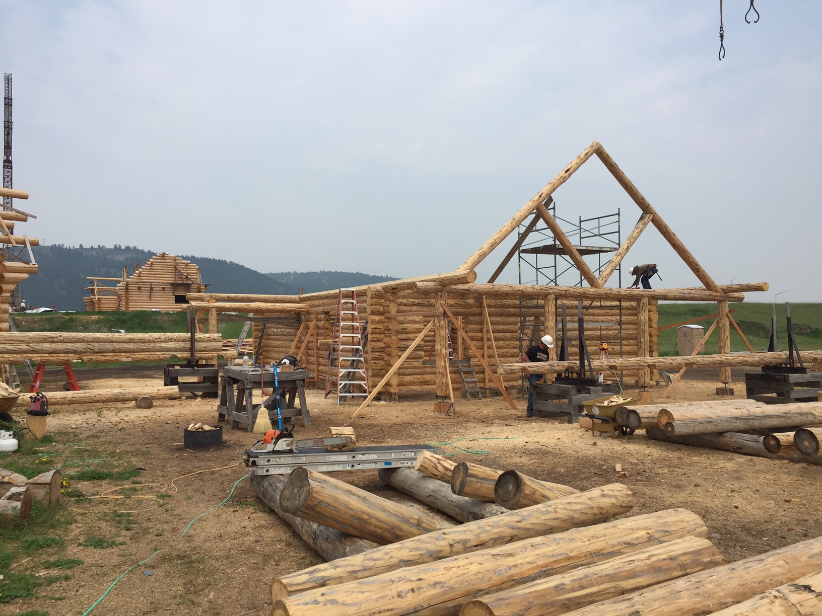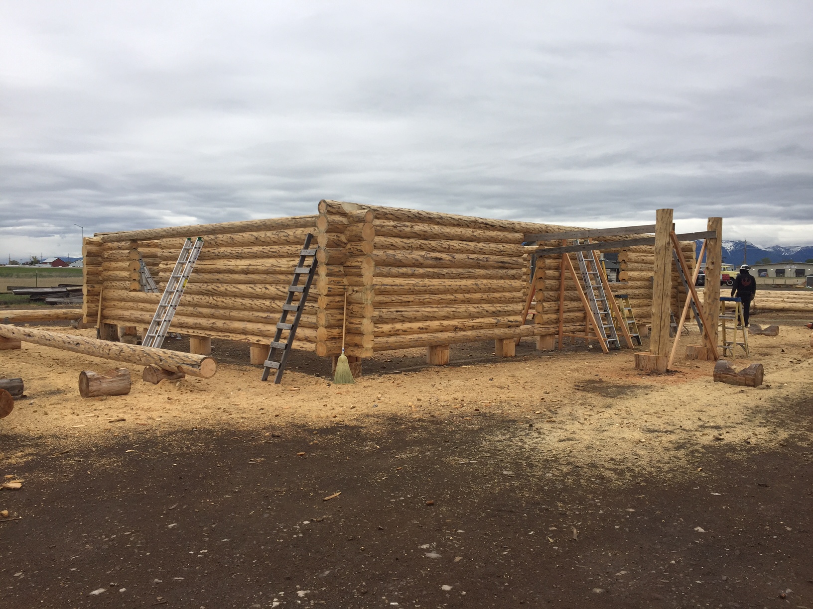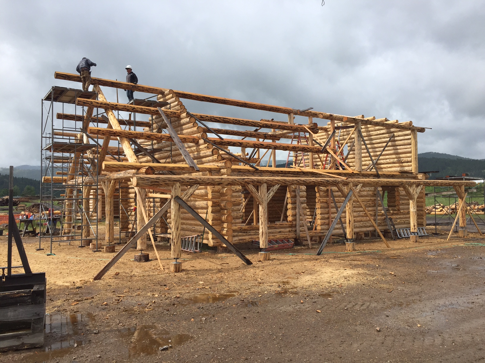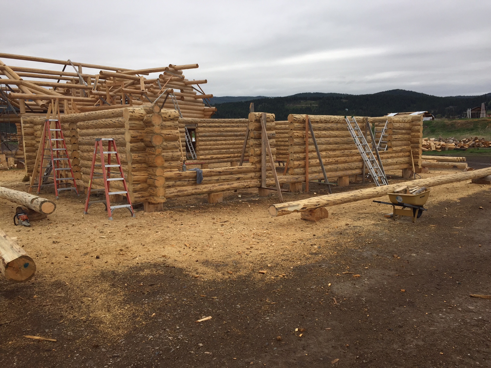 Several years ago Mike and Randi purchased a 40-acre plot at the Wild Horse Ranch, just west of Laramie, WY. The ranch originally had been a cattle ranch, but was purchased by Brooks Properties and divided into 383, 40-acre plots, graded for gravel roads and an owner’s association was formed. Mike and Randi’s property is located on Bronco Rd., just south of the main entrance on WY. Hwy. 130. A few years ago a 40’x 30′ living quarters and garage combo was built by Duramack’s out of Cheyenne, WY. This will serve as a place to stay while their log home is being built. In June, 2018, they visited Montana Log Homes in Kalispell, MT, where we met Brad Neu. We decided on a log home package through Montana Log Homes and a design was picked. We anticipate the foundation to be completed in June of 2019, with the logs being delivered and erected during the summer. Follow along as the log-smiths handcraft these skip peeled Lodgepole pine logs into Mike and Randi’s one of a kind log home.