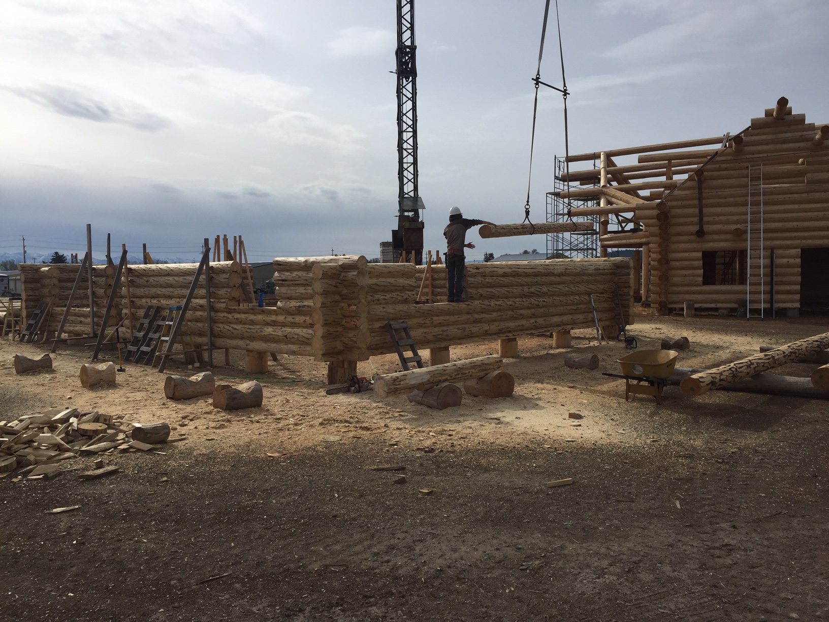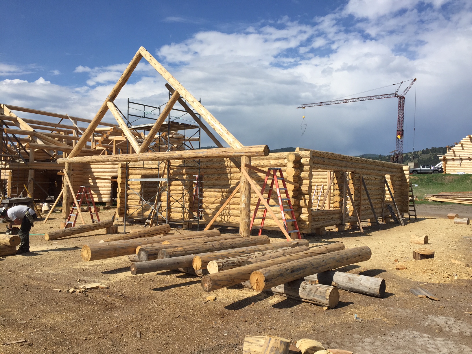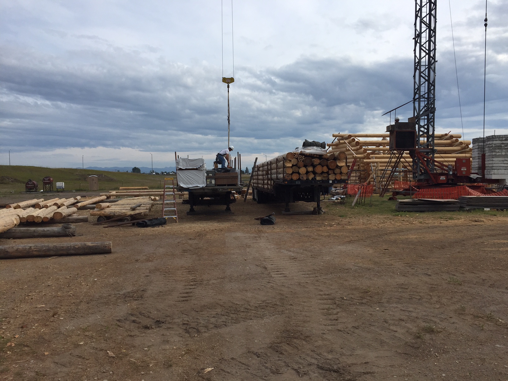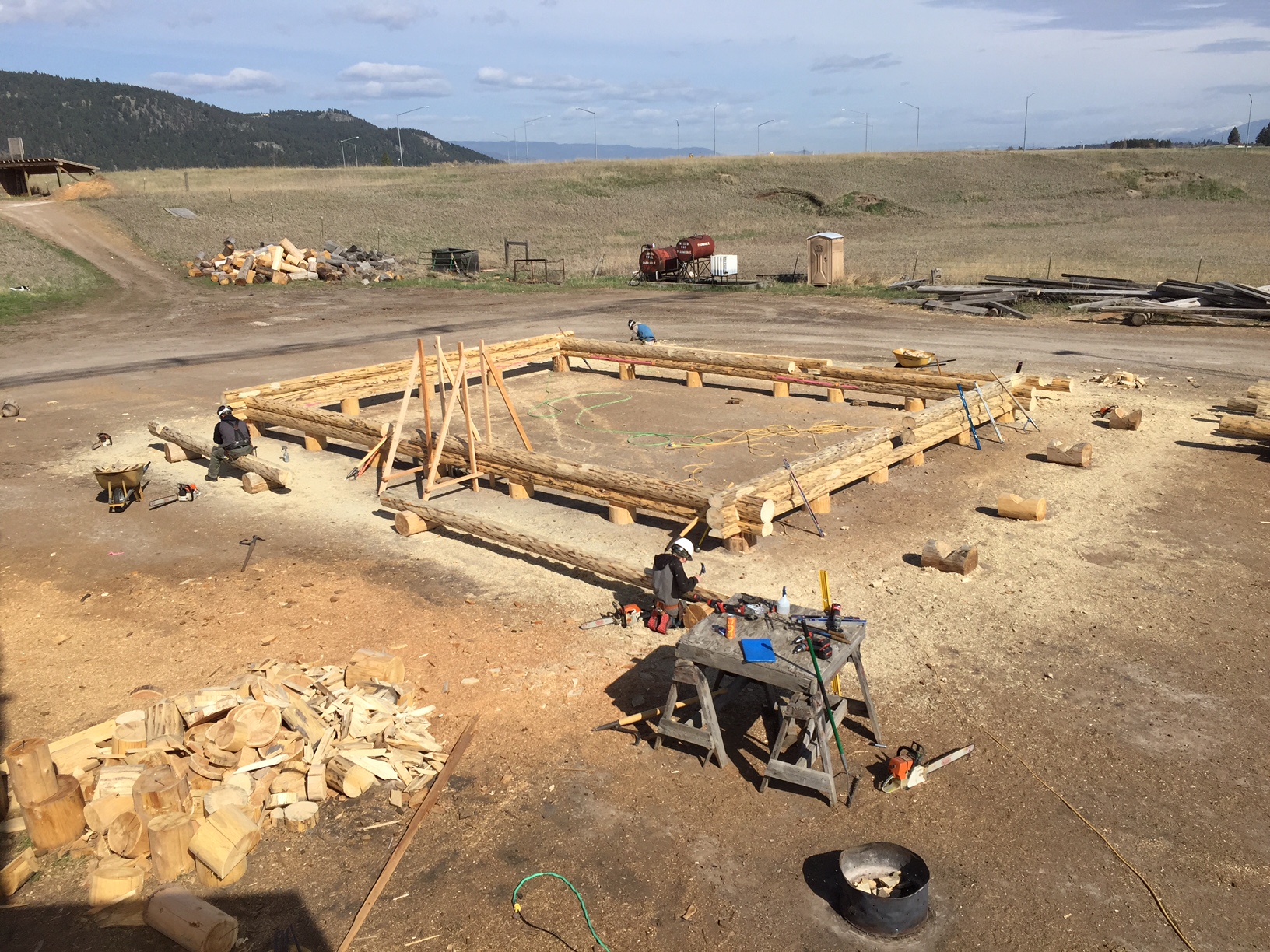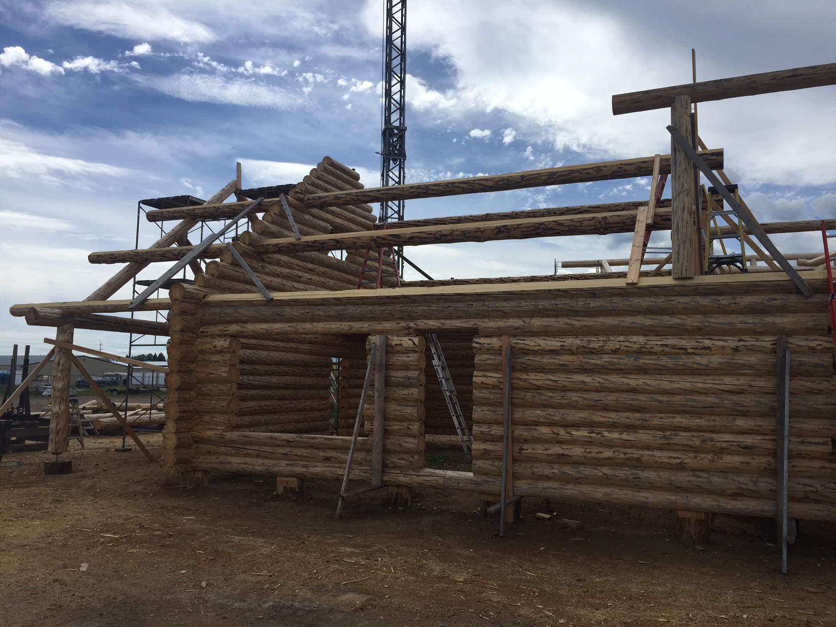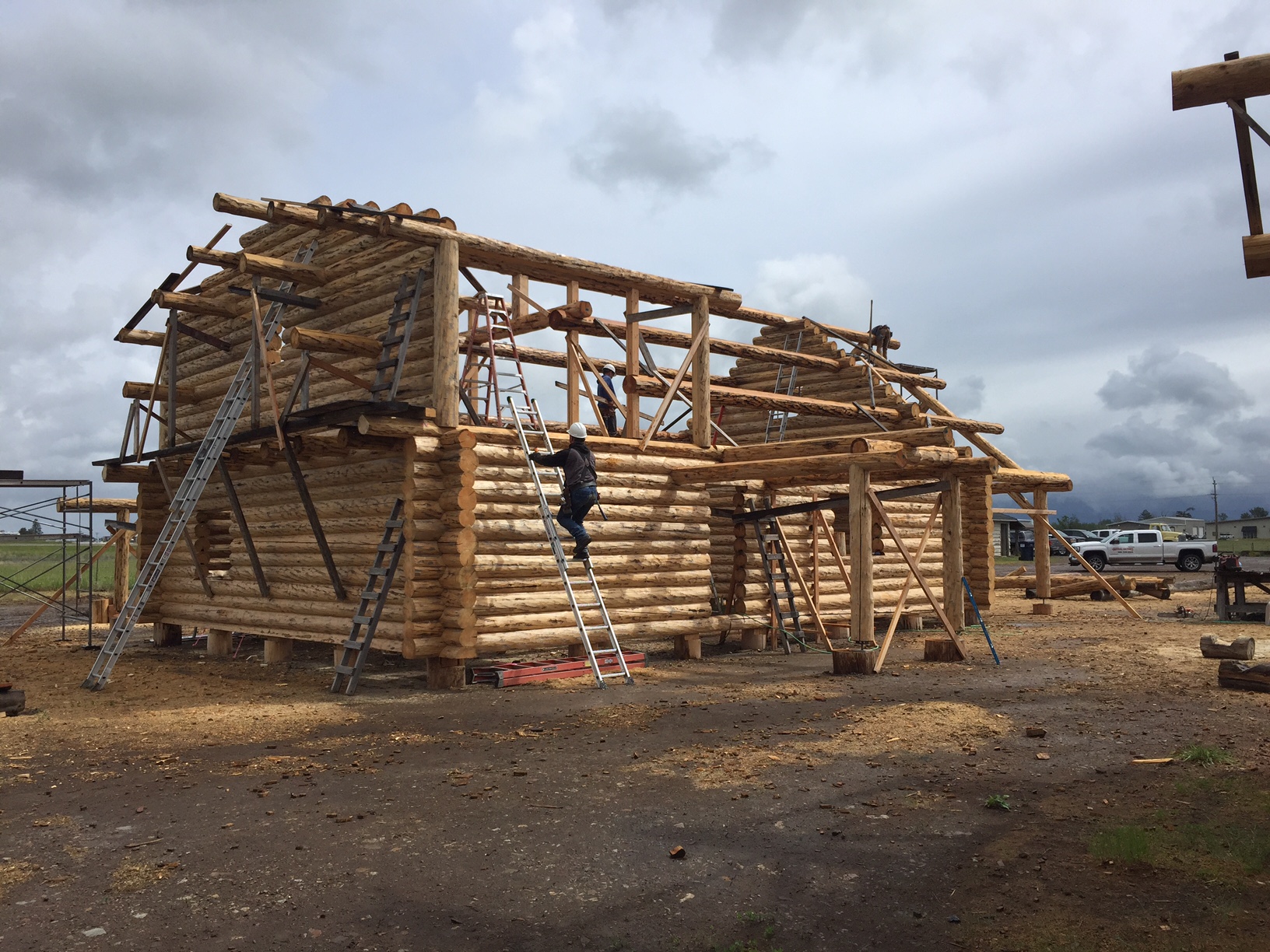 Several years ago Mike and Randi purchased a 40-acre plot at the Wild Horse Ranch, just west of Laramie, WY. The ranch originally had been a cattle ranch, but was purchased by Brooks Properties and divided into 383, 40-acre plots, graded for gravel roads and an owner’s association was formed. Mike and Randi’s property is located on Bronco Rd., just south of the main entrance on WY. Hwy. 130. A few years ago a 40’x 30′ living quarters and garage combo was built by Duramack’s out of Cheyenne, WY. This will serve as a place to stay while their log home is being built. In June, 2018, they visited Montana Log Homes in Kalispell, MT, where we met Brad Neu. We decided on a log home package through Montana Log Homes and a design was picked. We anticipate the foundation to be completed in June of 2019, with the logs being delivered and erected during the summer. Follow along as the log-smiths handcraft these skip peeled Lodgepole pine logs into Mike and Randi’s one of a kind log home.