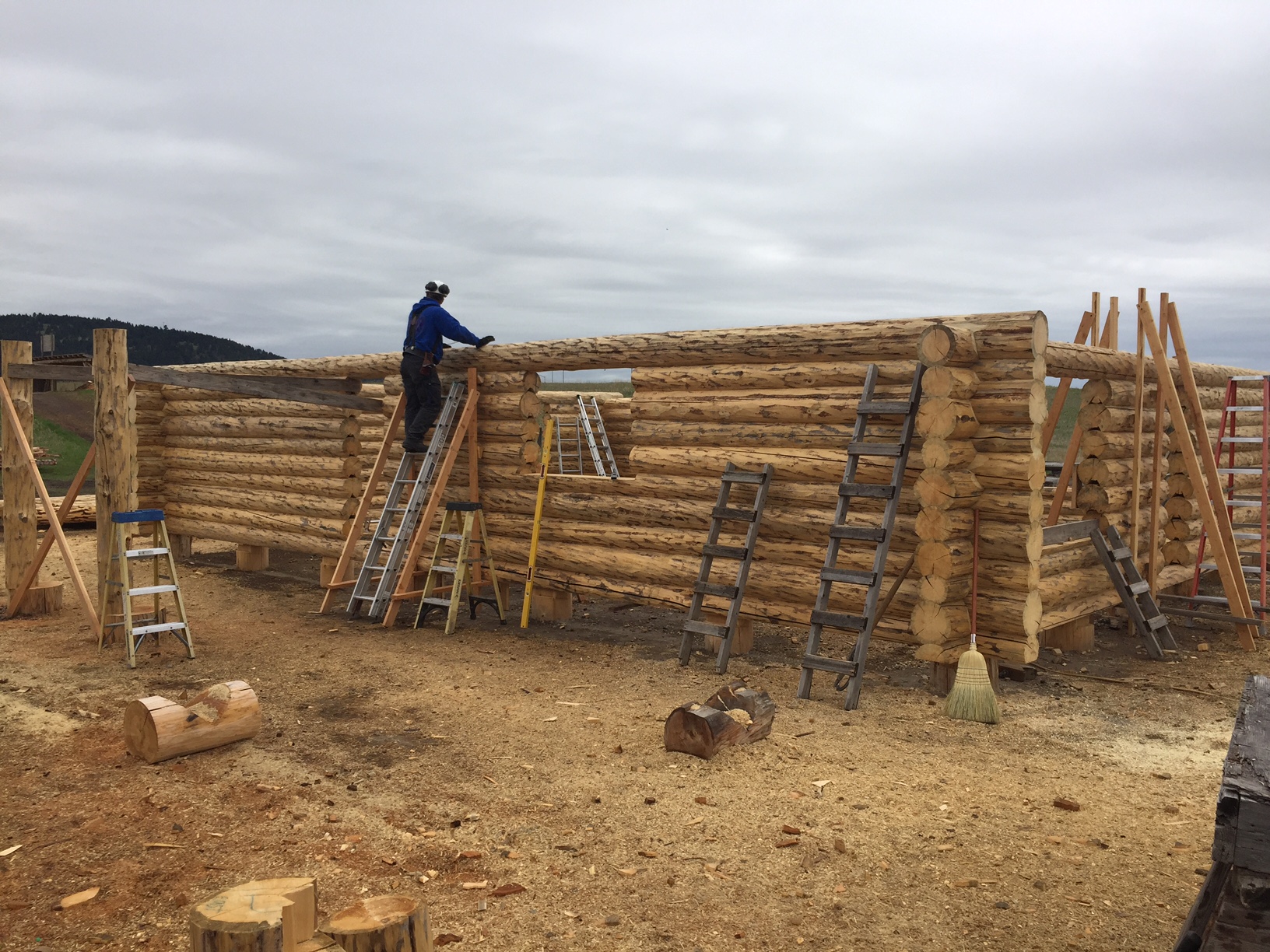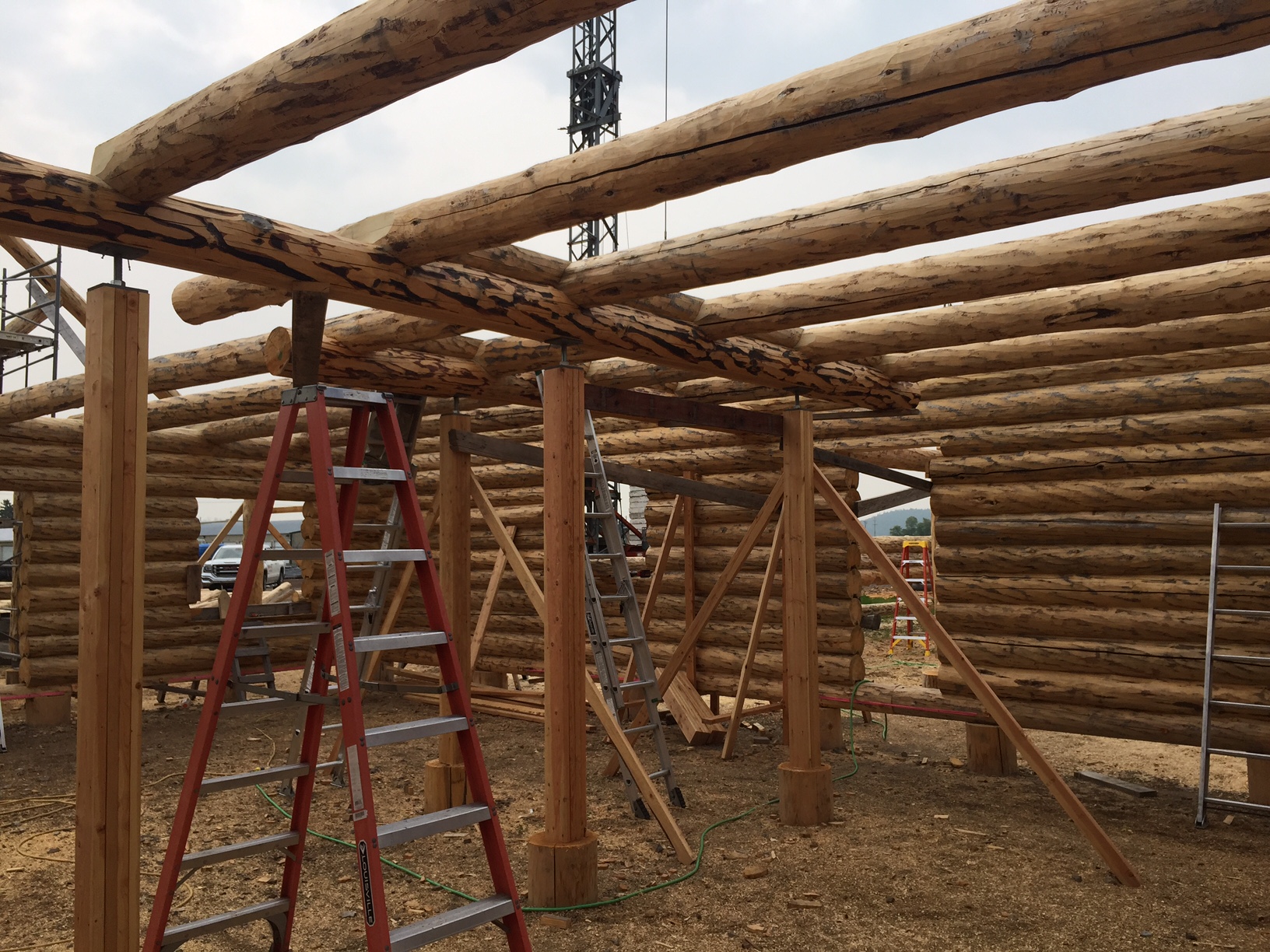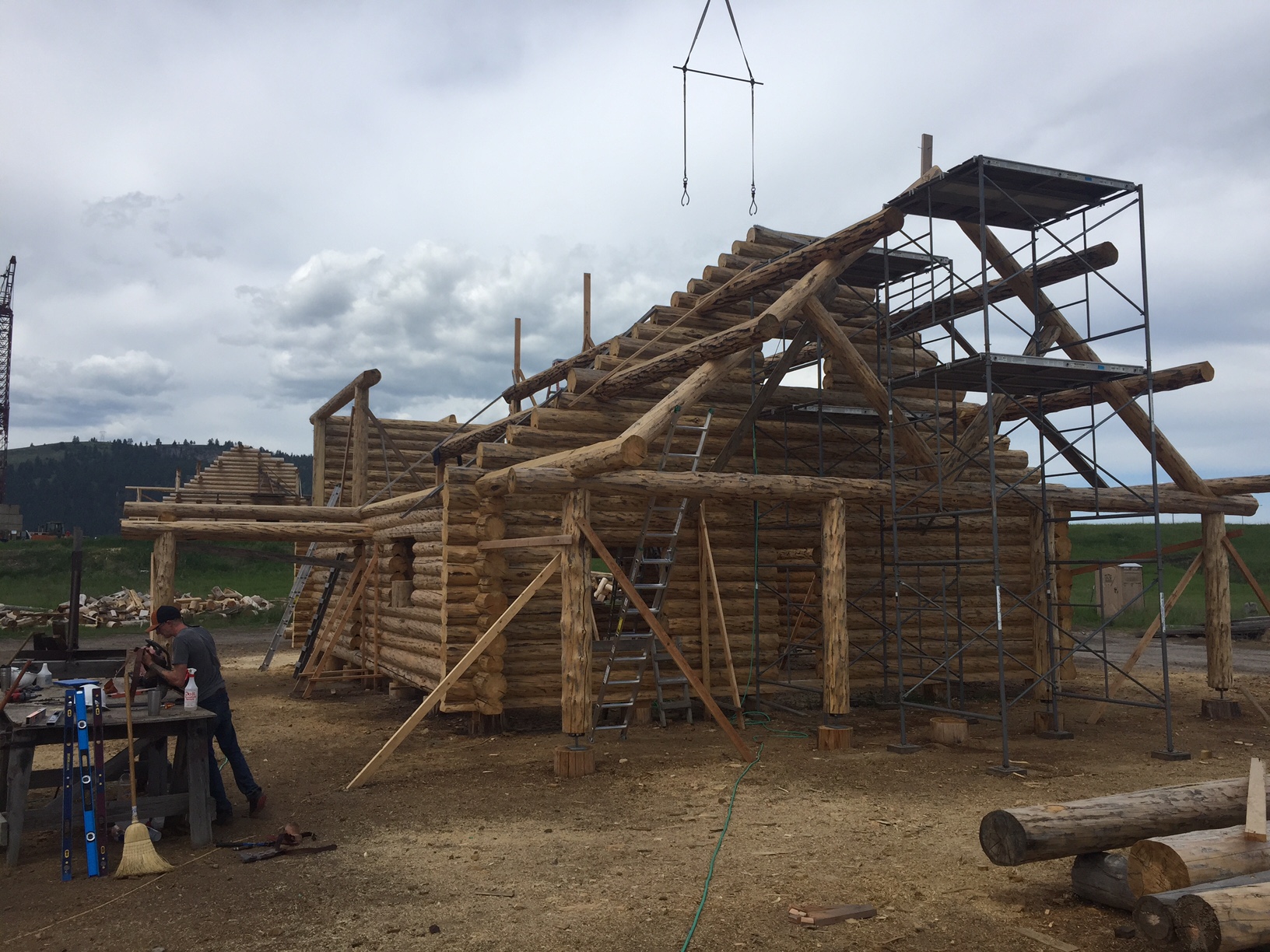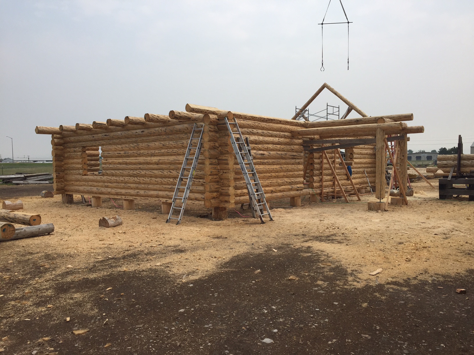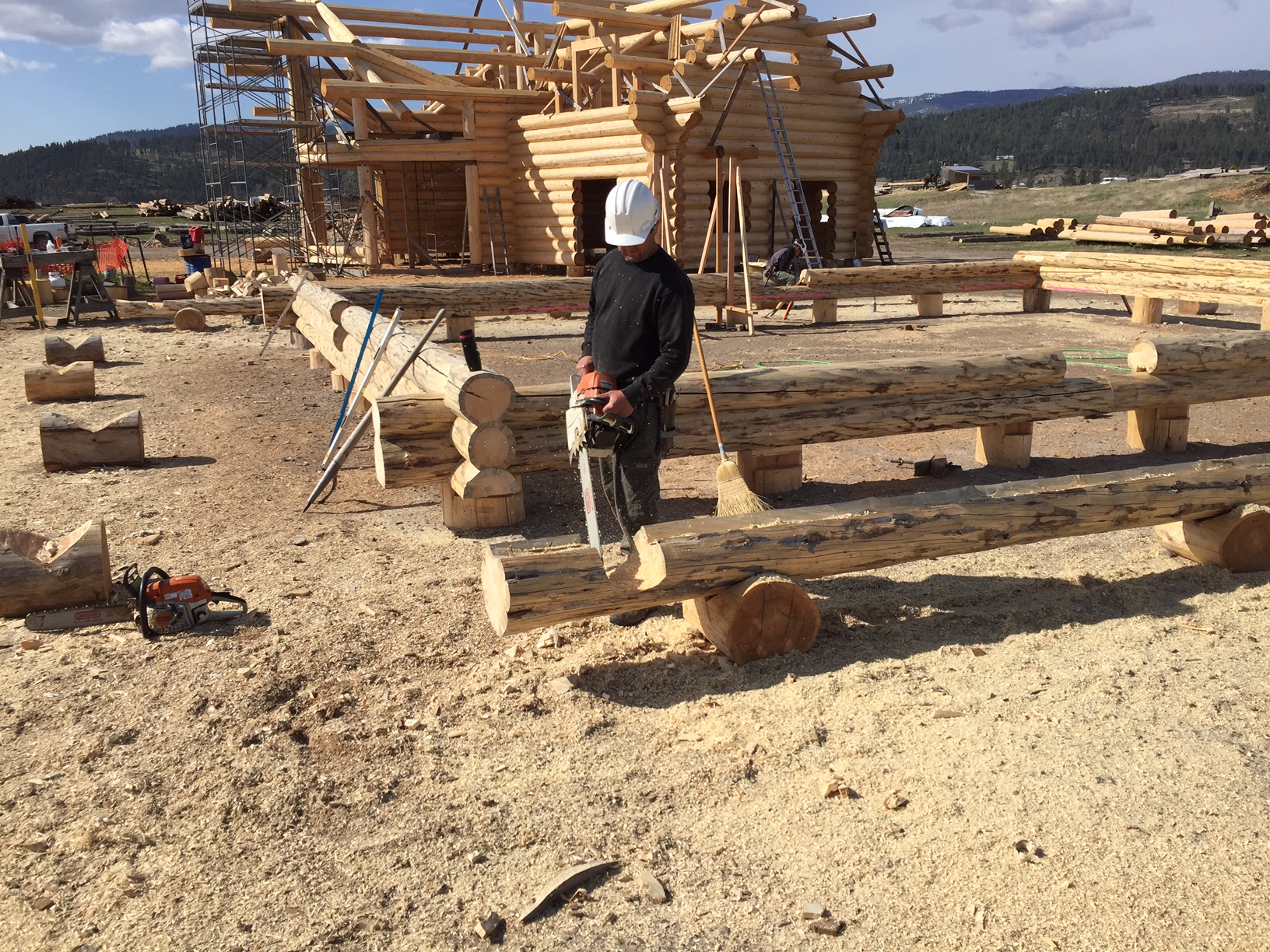 Several years ago Mike and Randi purchased a 40-acre plot at the Wild Horse Ranch, just west of Laramie, WY. The ranch originally had been a cattle ranch, but was purchased by Brooks Properties and divided into 383, 40-acre plots, graded for gravel roads and an owner’s association was formed. Mike and Randi’s property is located on Bronco Rd., just south of the main entrance on WY. Hwy. 130. A few years ago a 40’x 30′ living quarters and garage combo was built by Duramack’s out of Cheyenne, WY. This will serve as a place to stay while their log home is being built. In June, 2018, they visited Montana Log Homes in Kalispell, MT, where we met Brad Neu. We decided on a log home package through Montana Log Homes and a design was picked. We anticipate the foundation to be completed in June of 2019, with the logs being delivered and erected during the summer. Follow along as the log-smiths handcraft these skip peeled Lodgepole pine logs into Mike and Randi’s one of a kind log home.