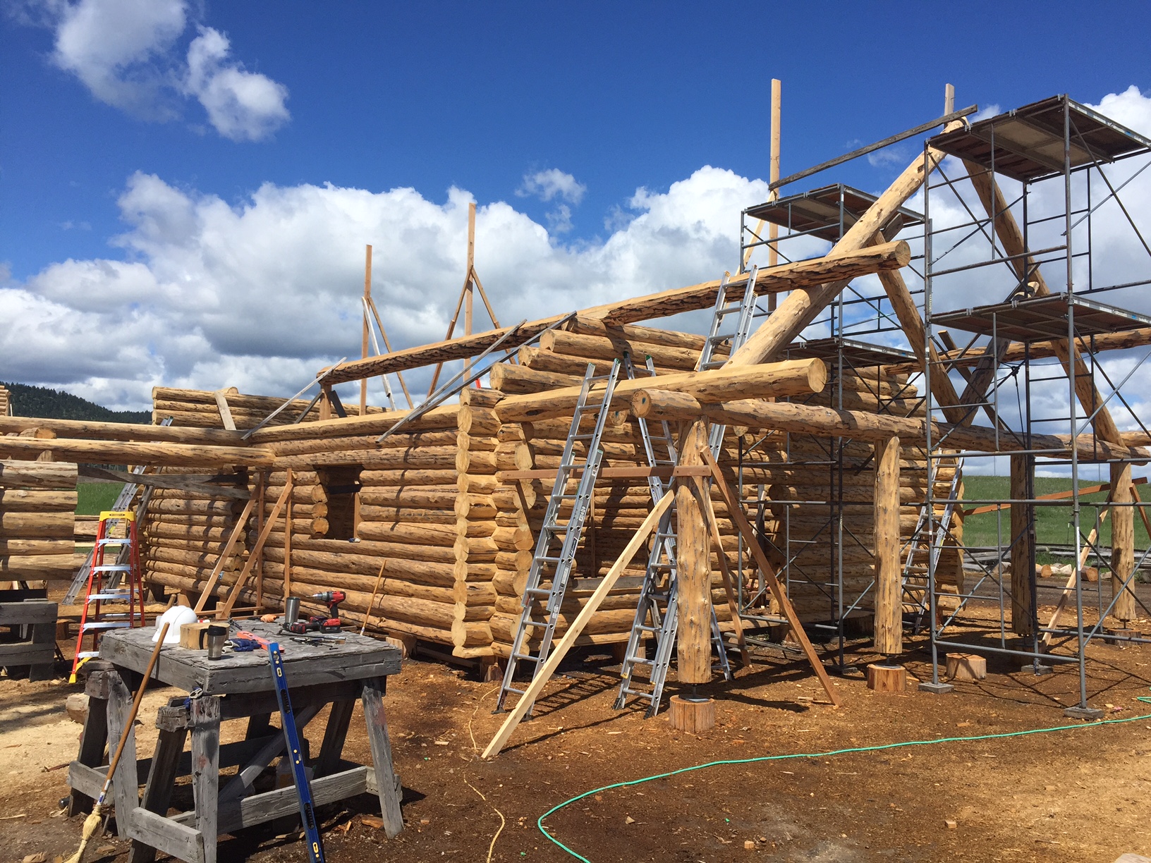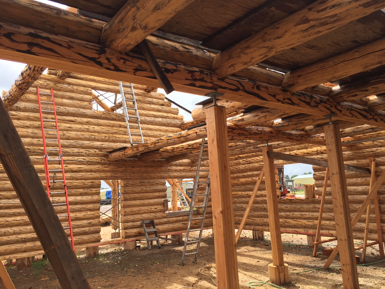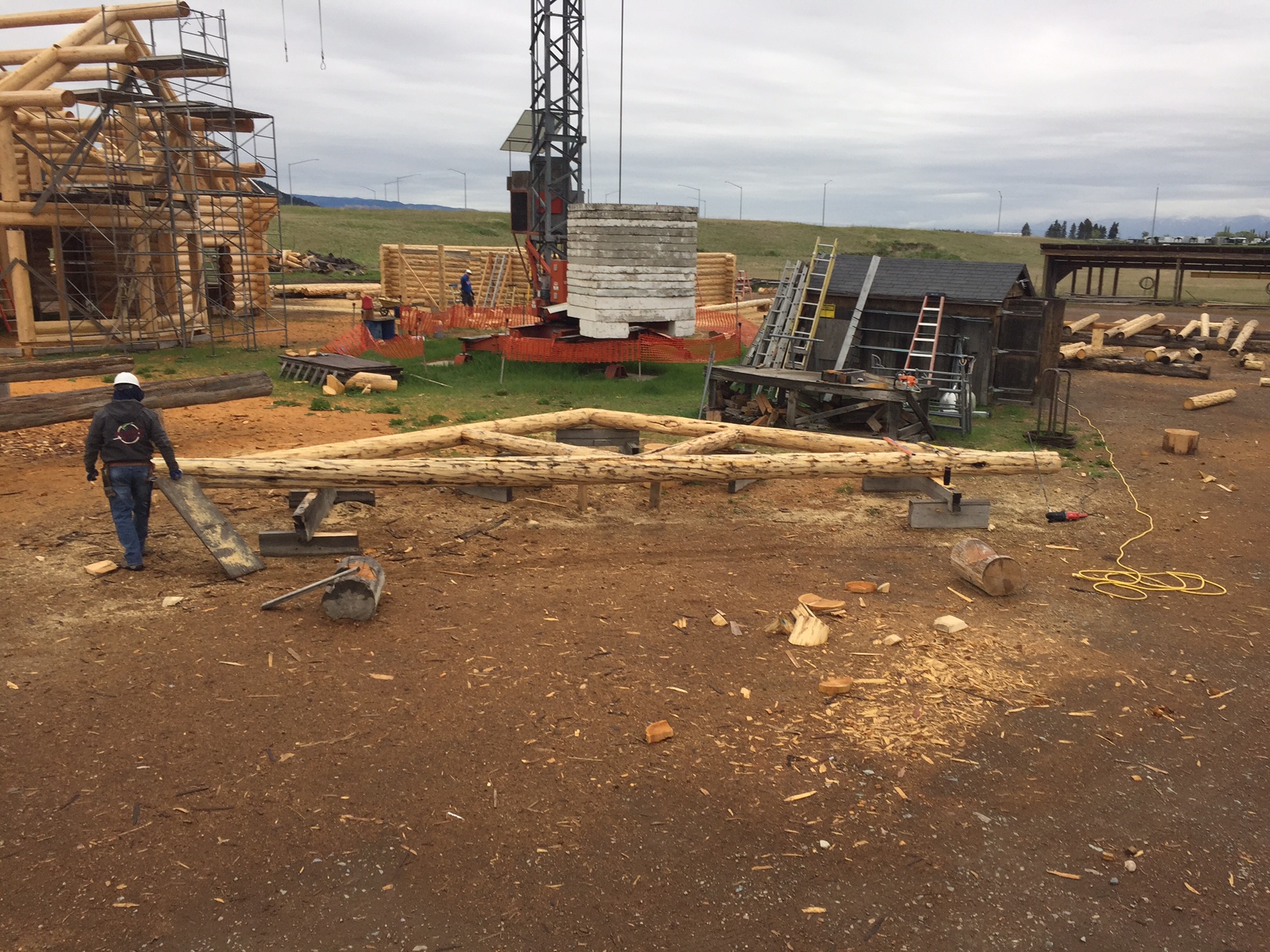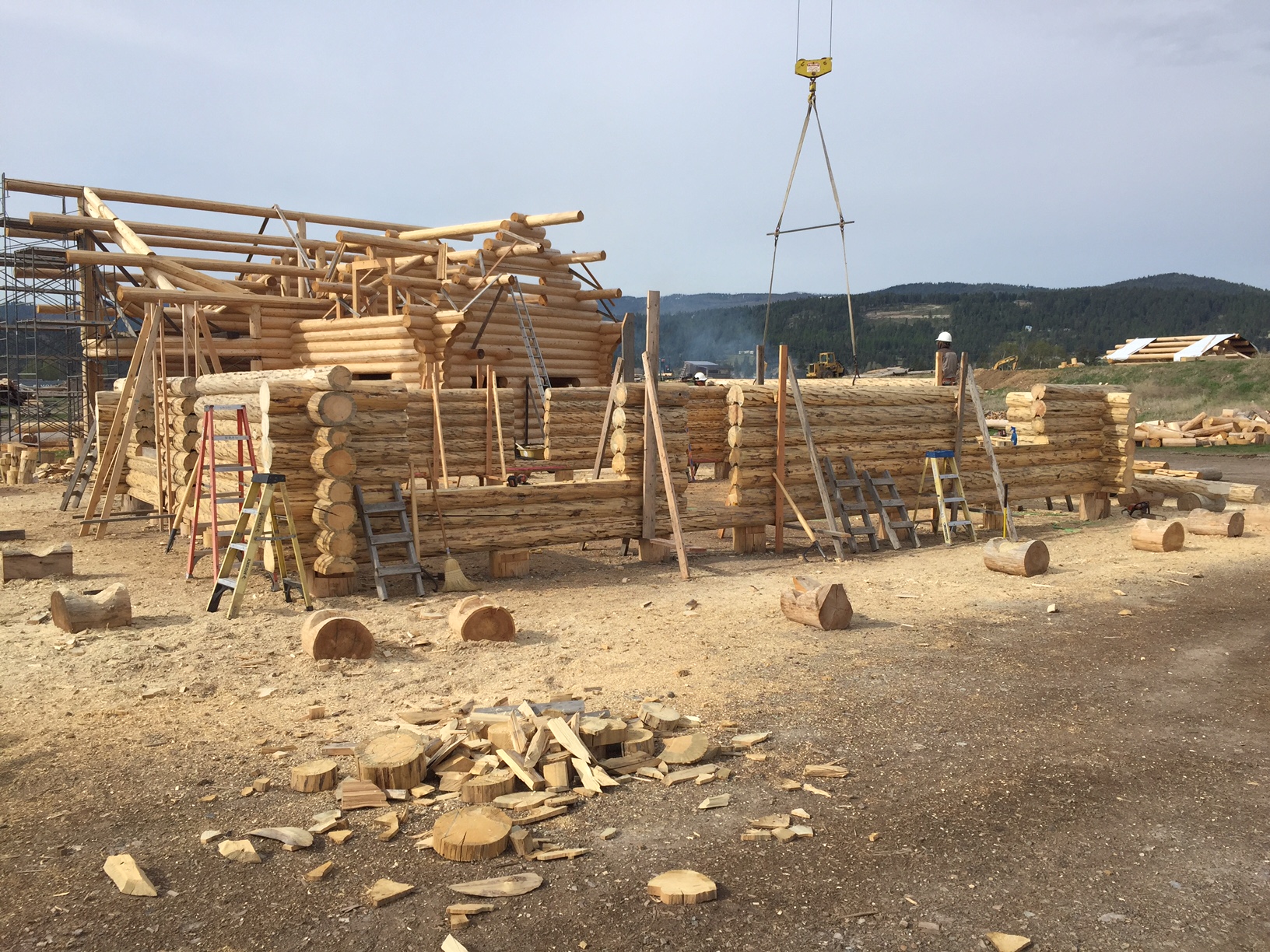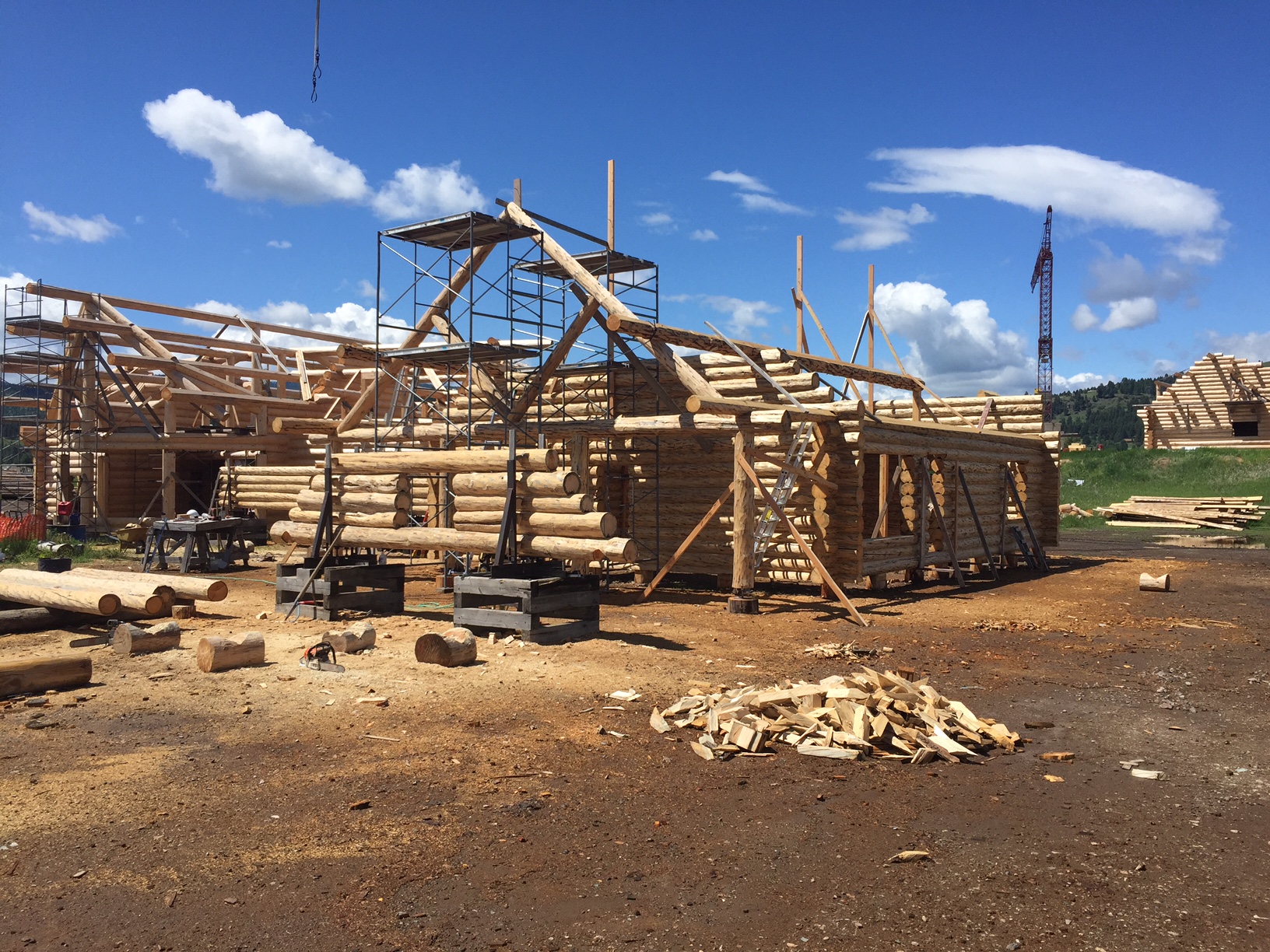 Several years ago Mike and Randi purchased a 40-acre plot at the Wild Horse Ranch, just west of Laramie, WY. The ranch originally had been a cattle ranch, but was purchased by Brooks Properties and divided into 383, 40-acre plots, graded for gravel roads and an owner’s association was formed. Mike and Randi’s property is located on Bronco Rd., just south of the main entrance on WY. Hwy. 130. A few years ago a 40’x 30′ living quarters and garage combo was built by Duramack’s out of Cheyenne, WY. This will serve as a place to stay while their log home is being built. In June, 2018, they visited Montana Log Homes in Kalispell, MT, where we met Brad Neu. We decided on a log home package through Montana Log Homes and a design was picked. We anticipate the foundation to be completed in June of 2019, with the logs being delivered and erected during the summer. Follow along as the log-smiths handcraft these skip peeled Lodgepole pine logs into Mike and Randi’s one of a kind log home.