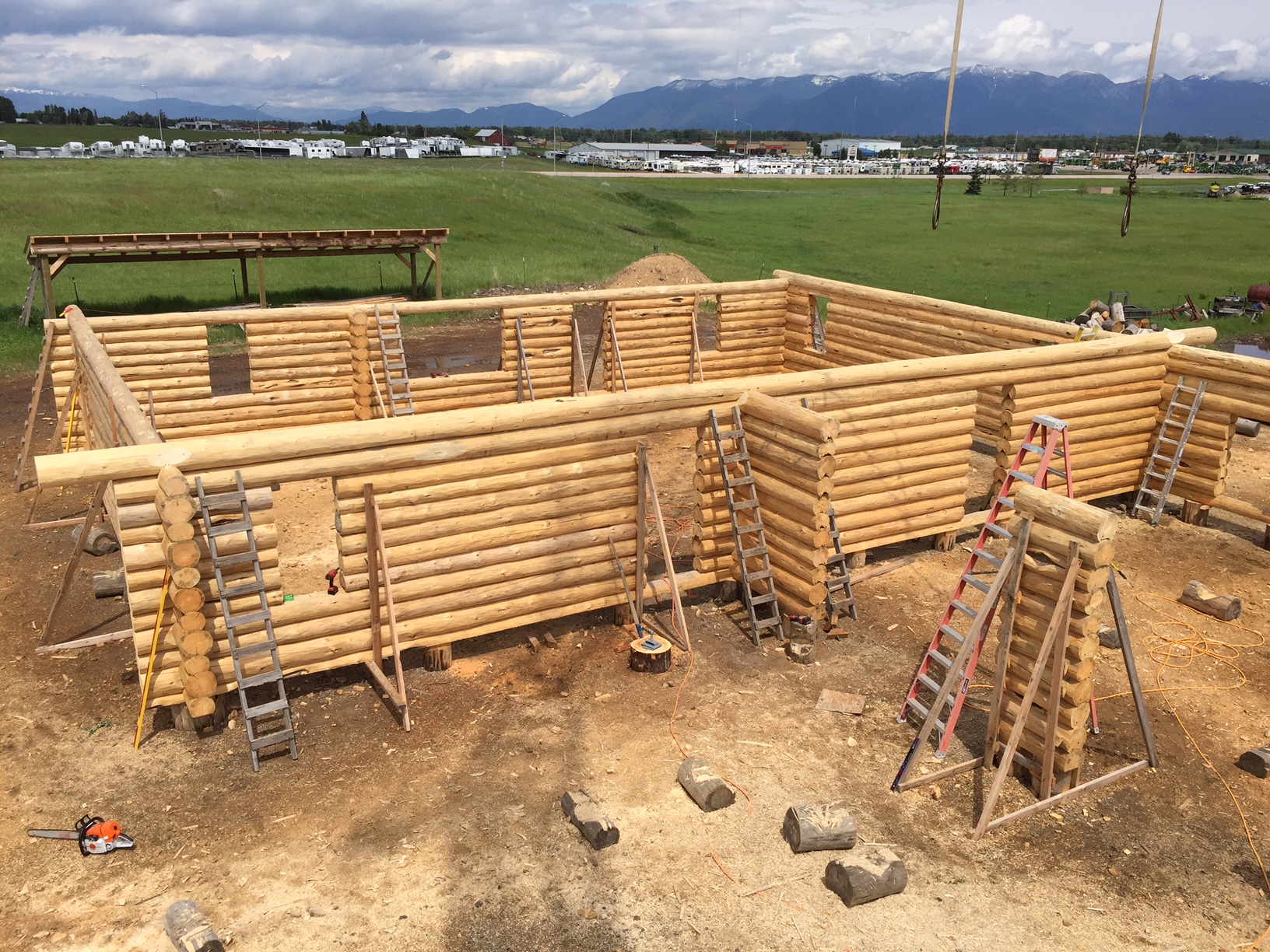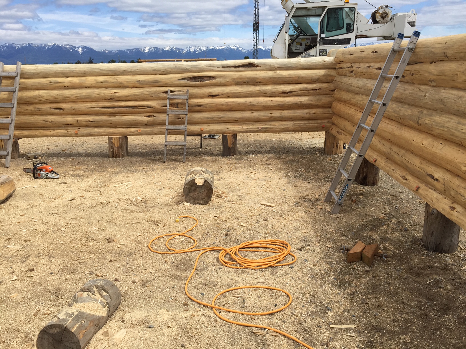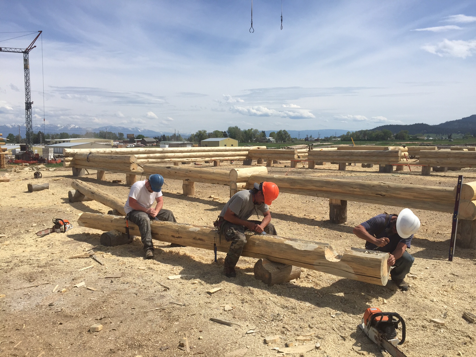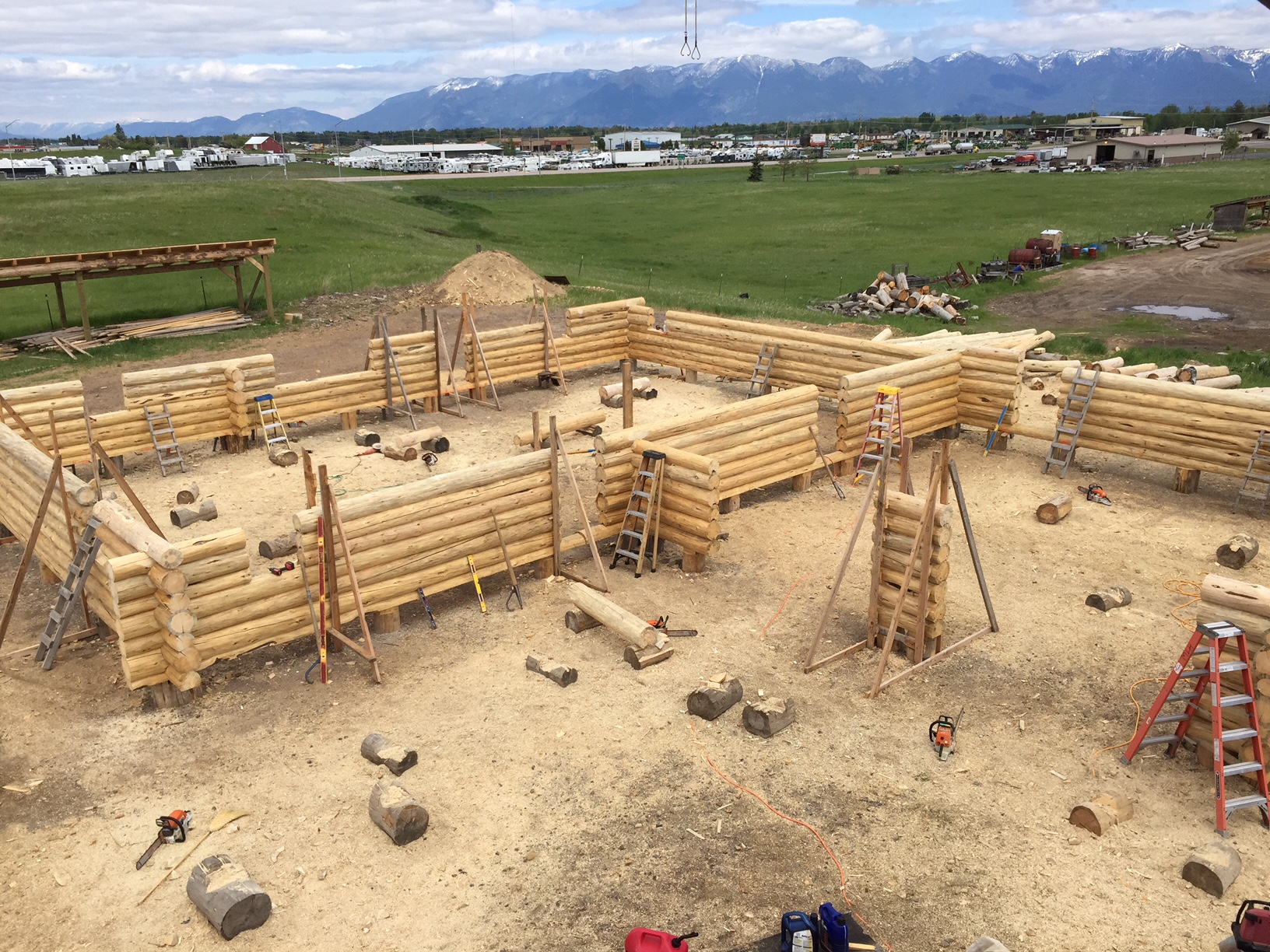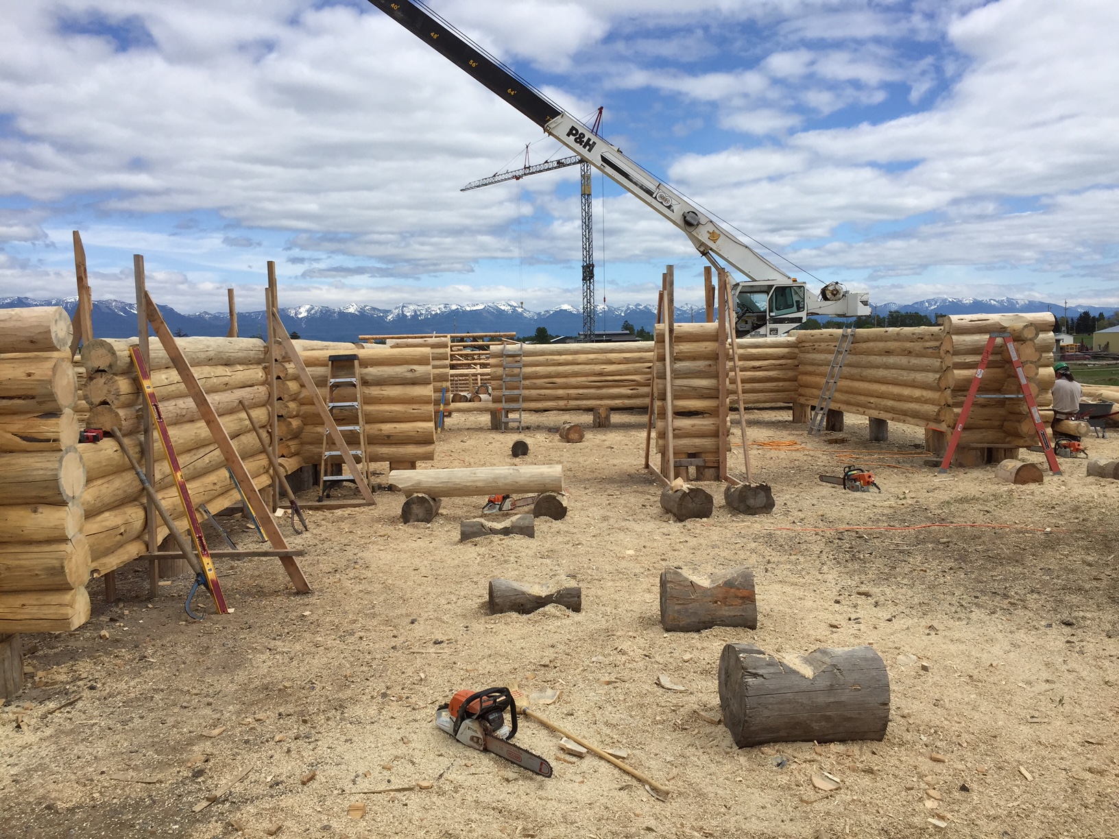 This couple is giving each other an amazing wedding gift; their new log home! They worked with Montana Log Homes’ design team to develop the plans for their new home. This three bedroom, ranch style home features an open living, dining and great room that provides a wonderful space for living and entertaining. The attached two car garage is a must for the harsh winters of Havre Montana! Follow along as each log is scribed, cut and fitted to create this one of a kind log home.