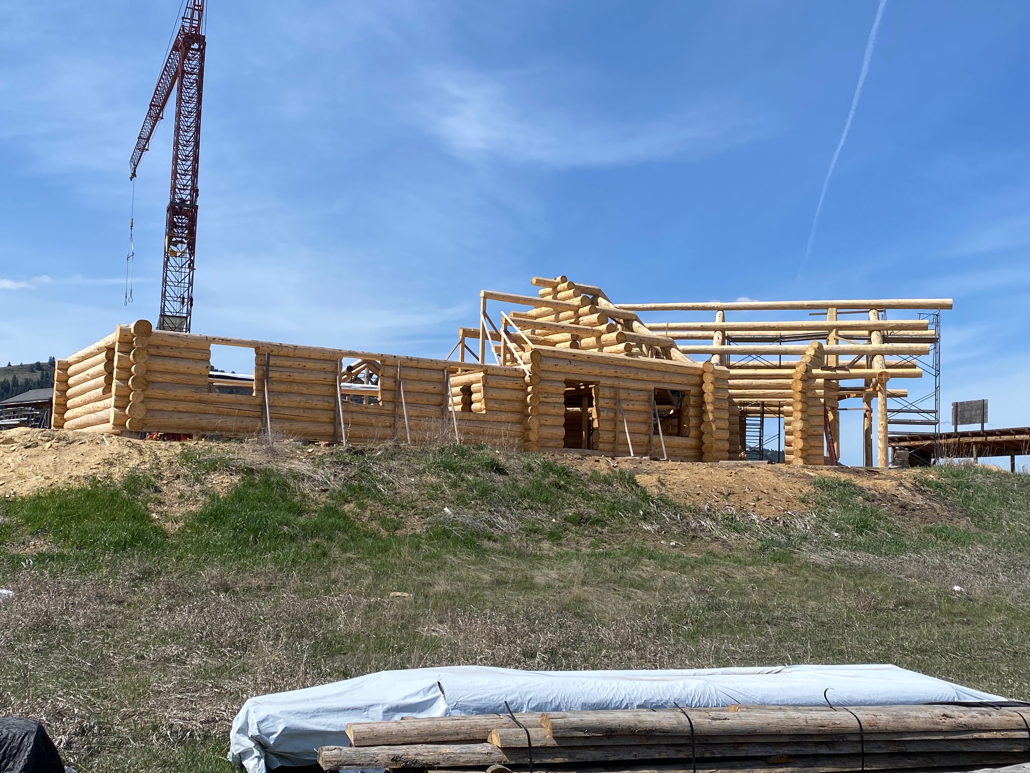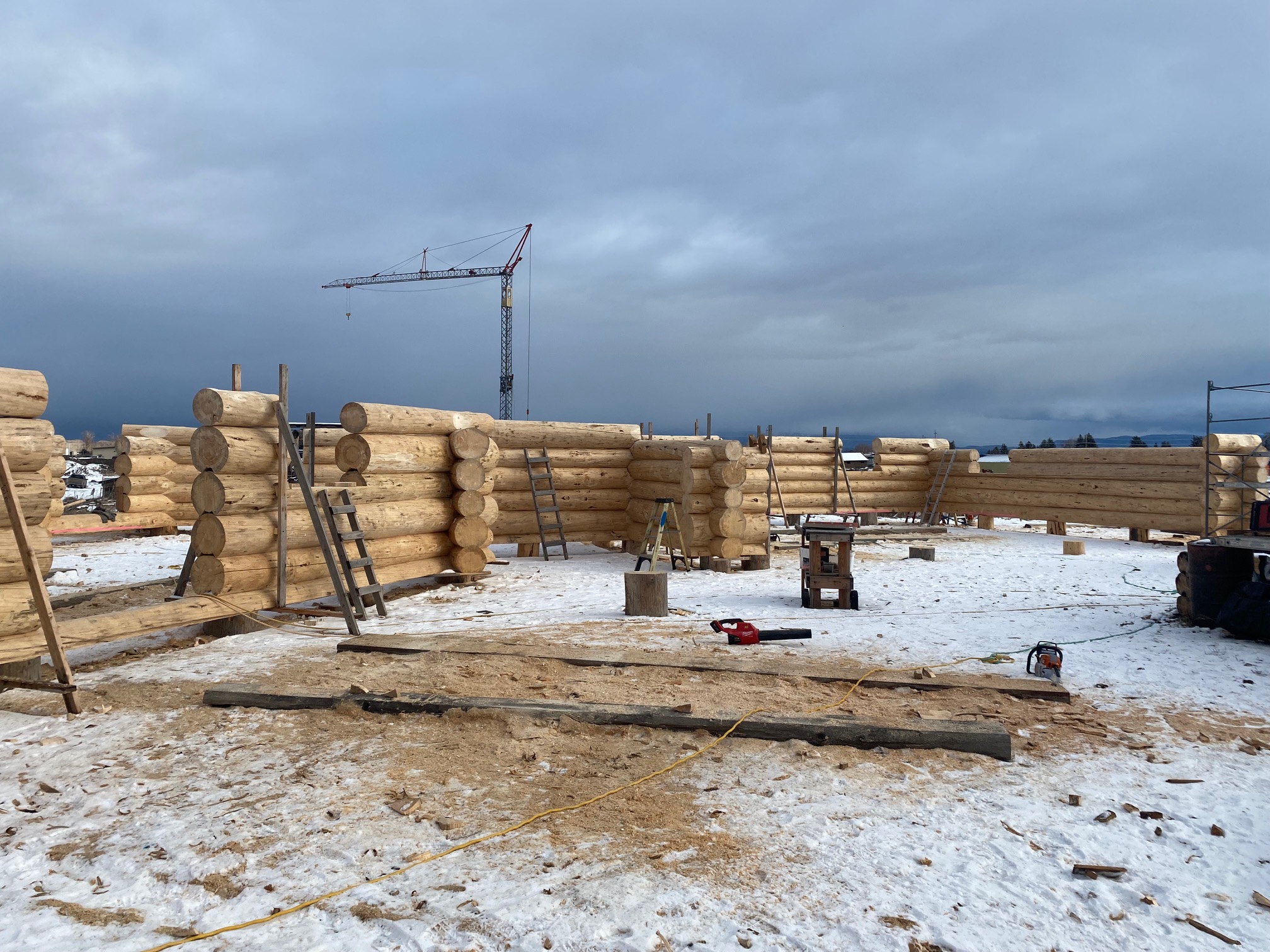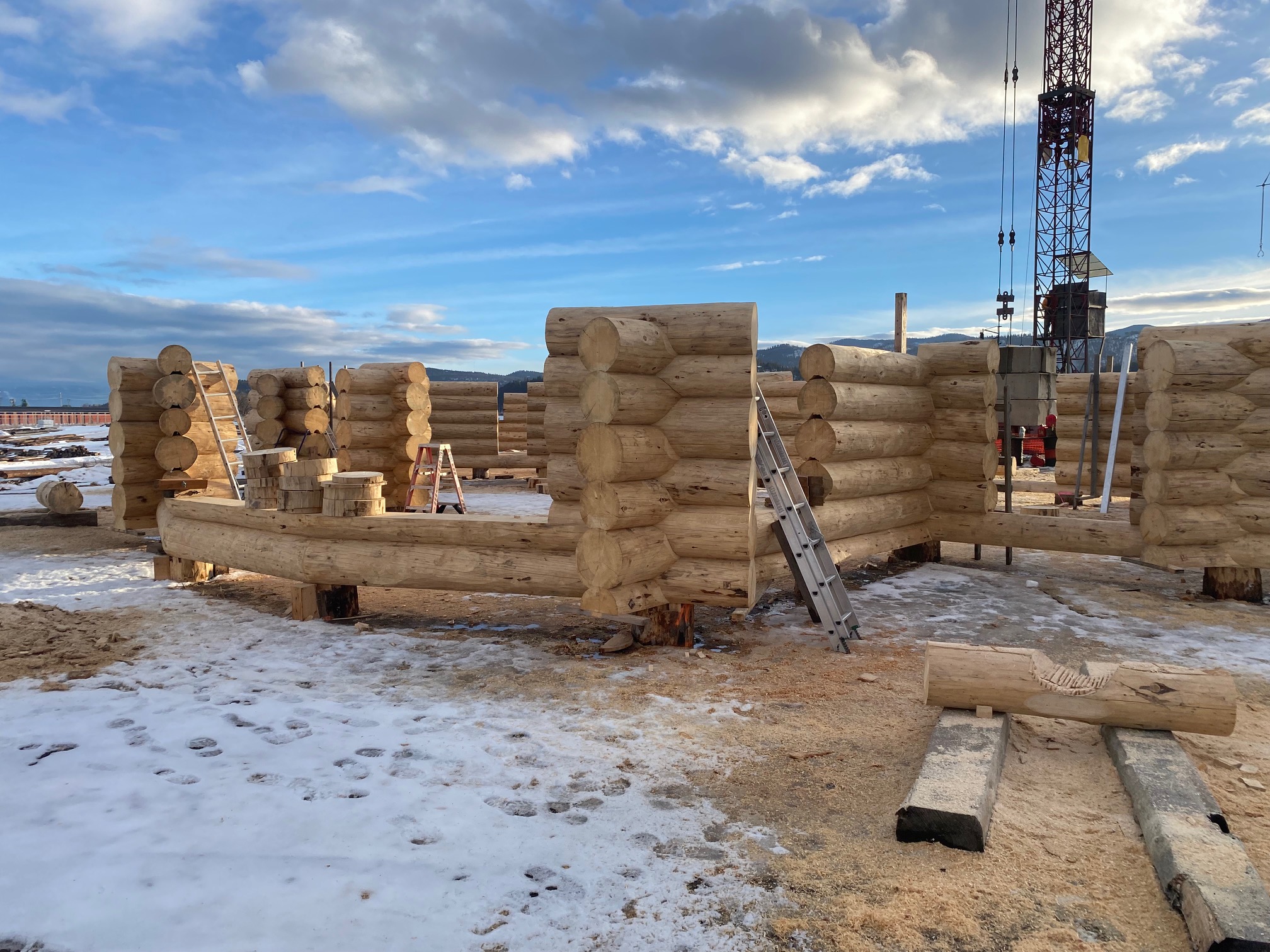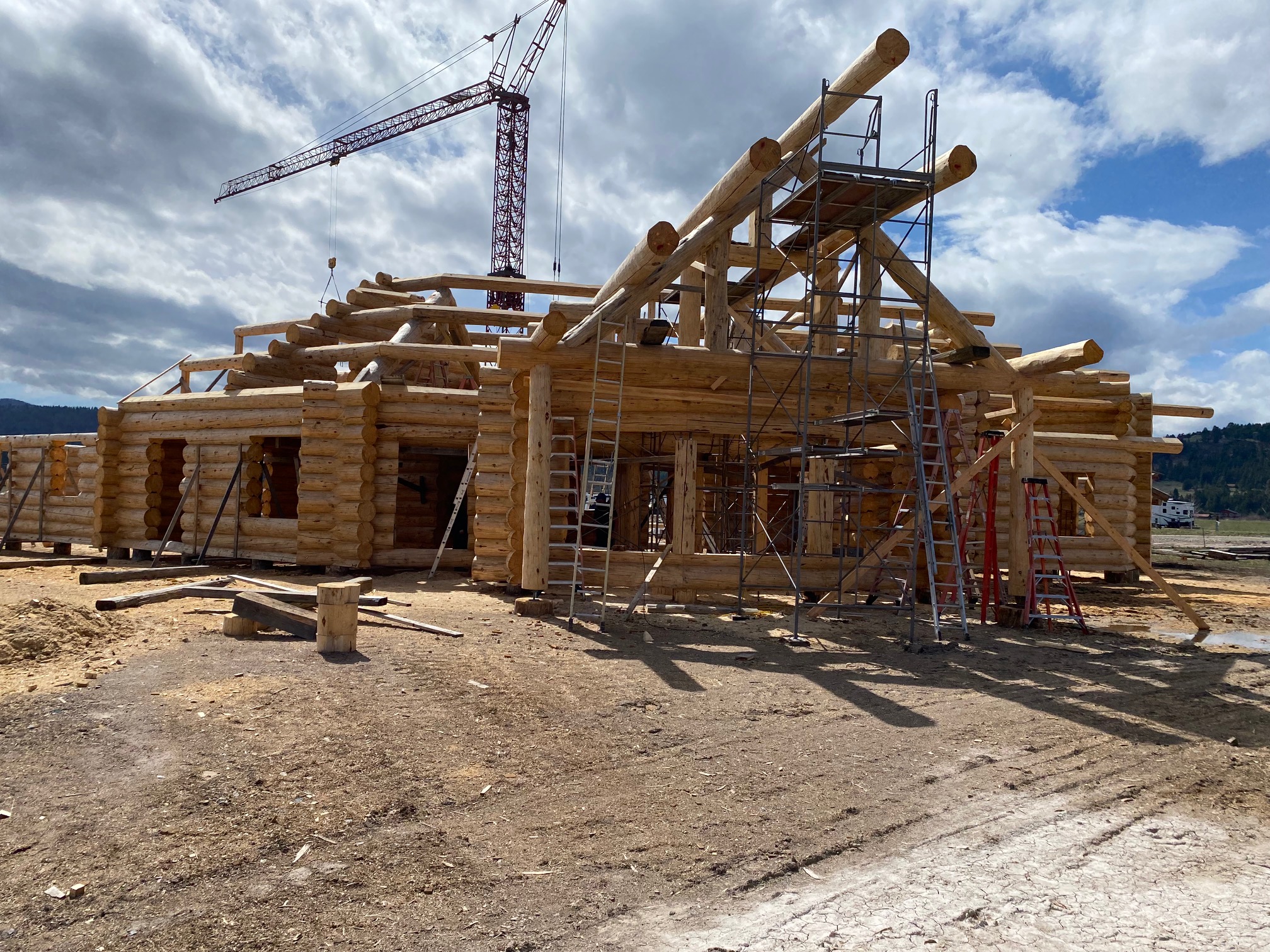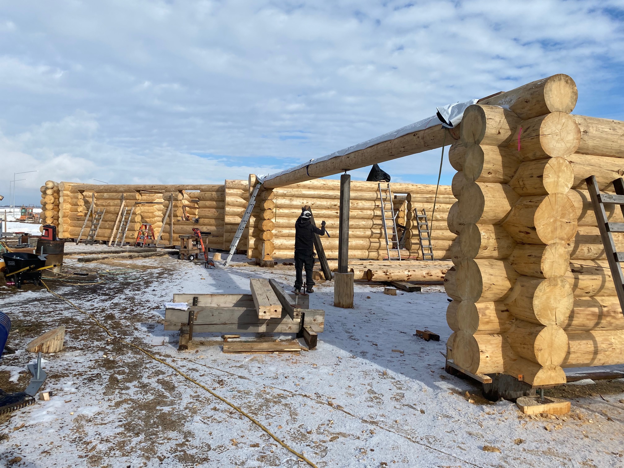 We are using dead standing 17″ to 21″ base diameter Engelmann Spruce logs for the construction. When completed it will be disassembled and transported to Colorado and re-assembled on a beautiful site.