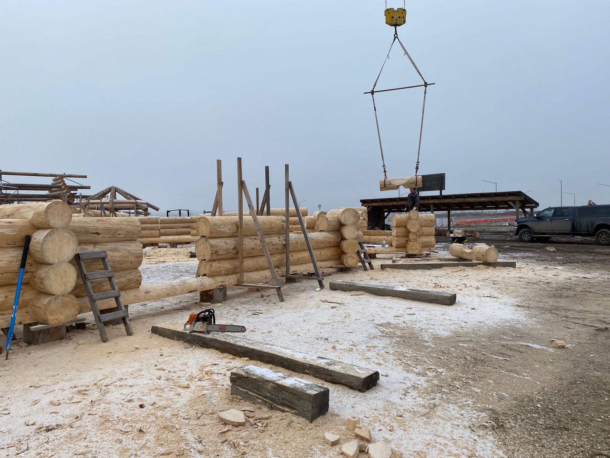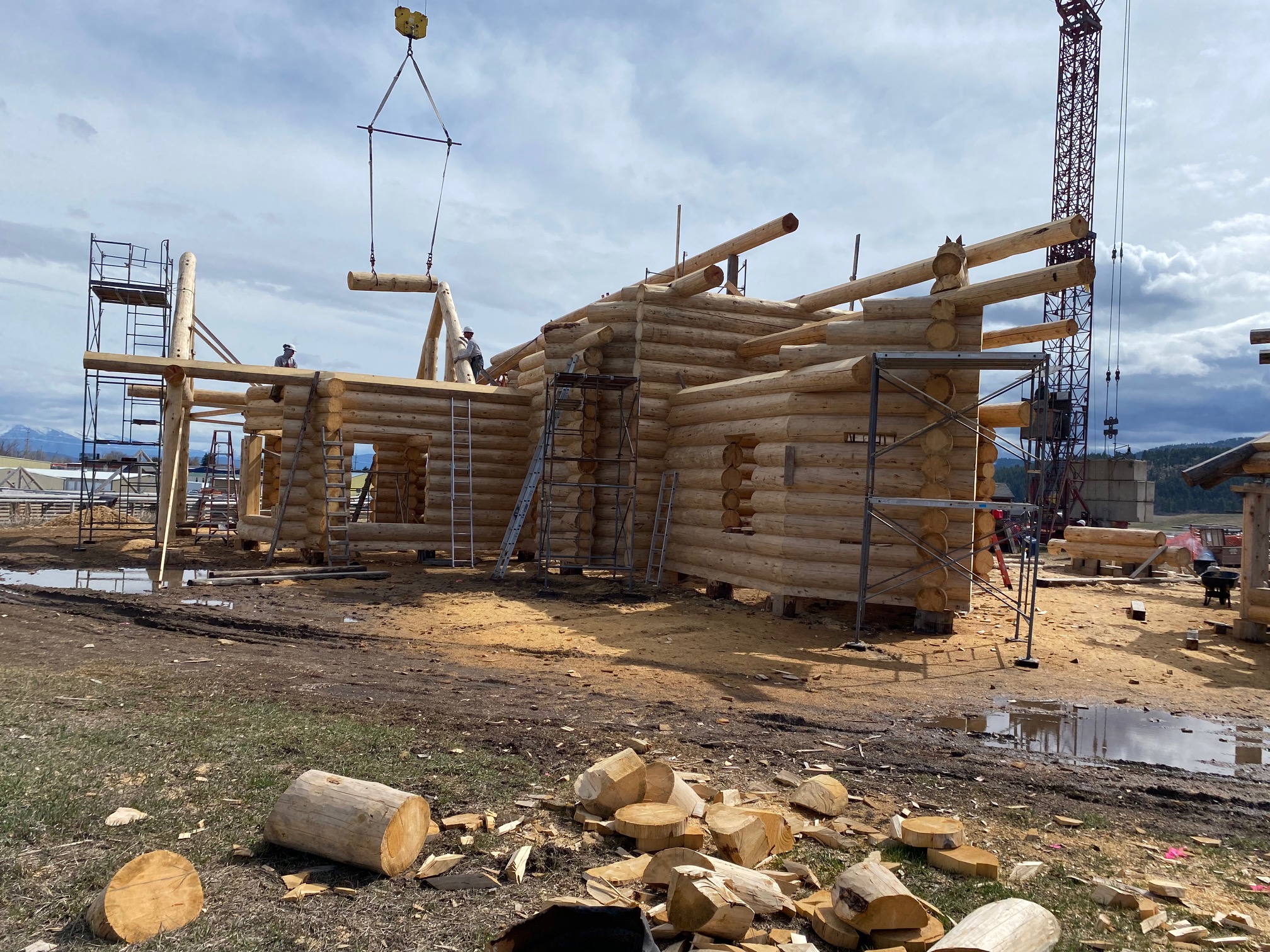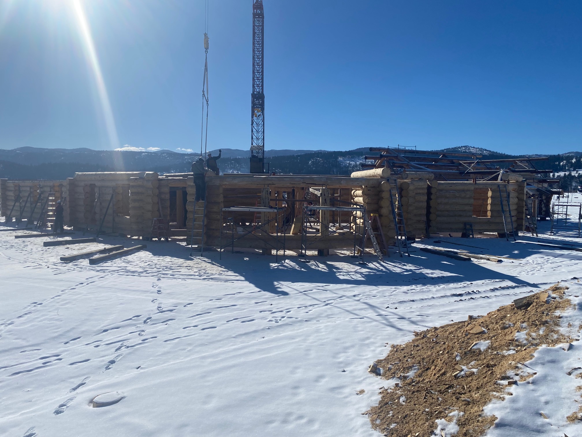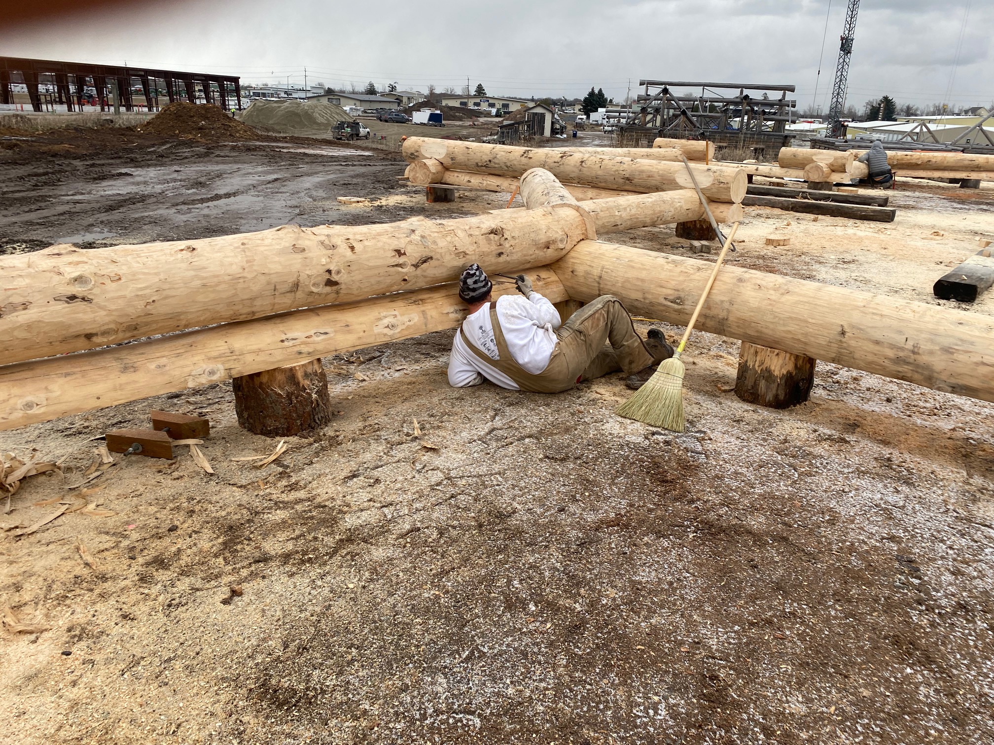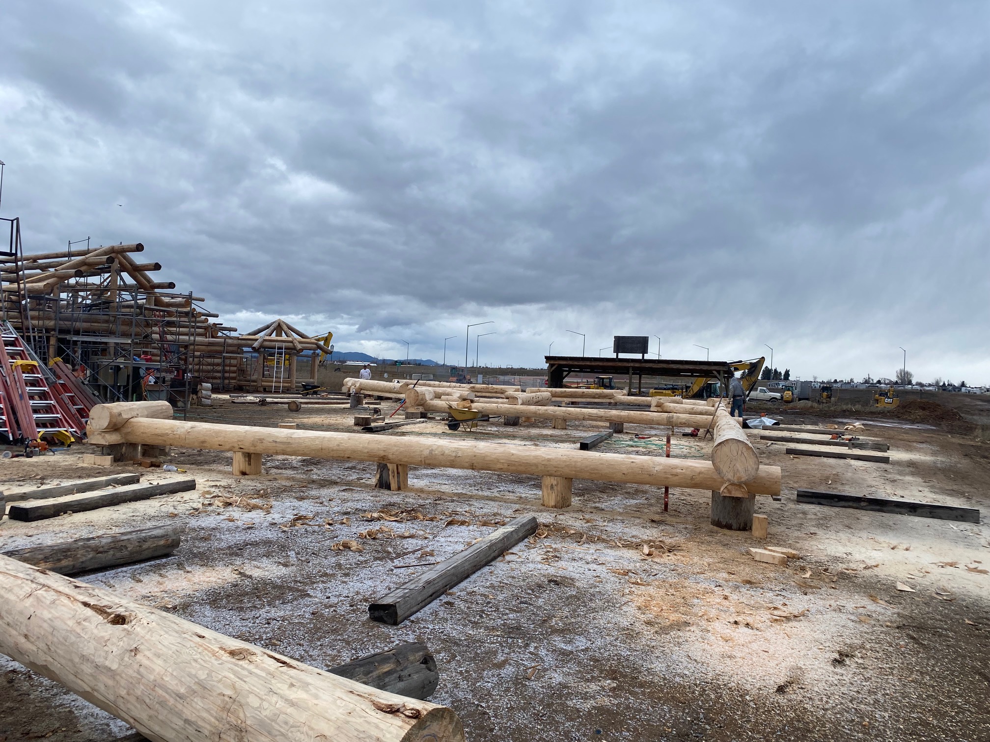 We are using dead standing 17″ to 21″ base diameter Engelmann Spruce logs for the construction. When completed it will be disassembled and transported to Colorado and re-assembled on a beautiful site.