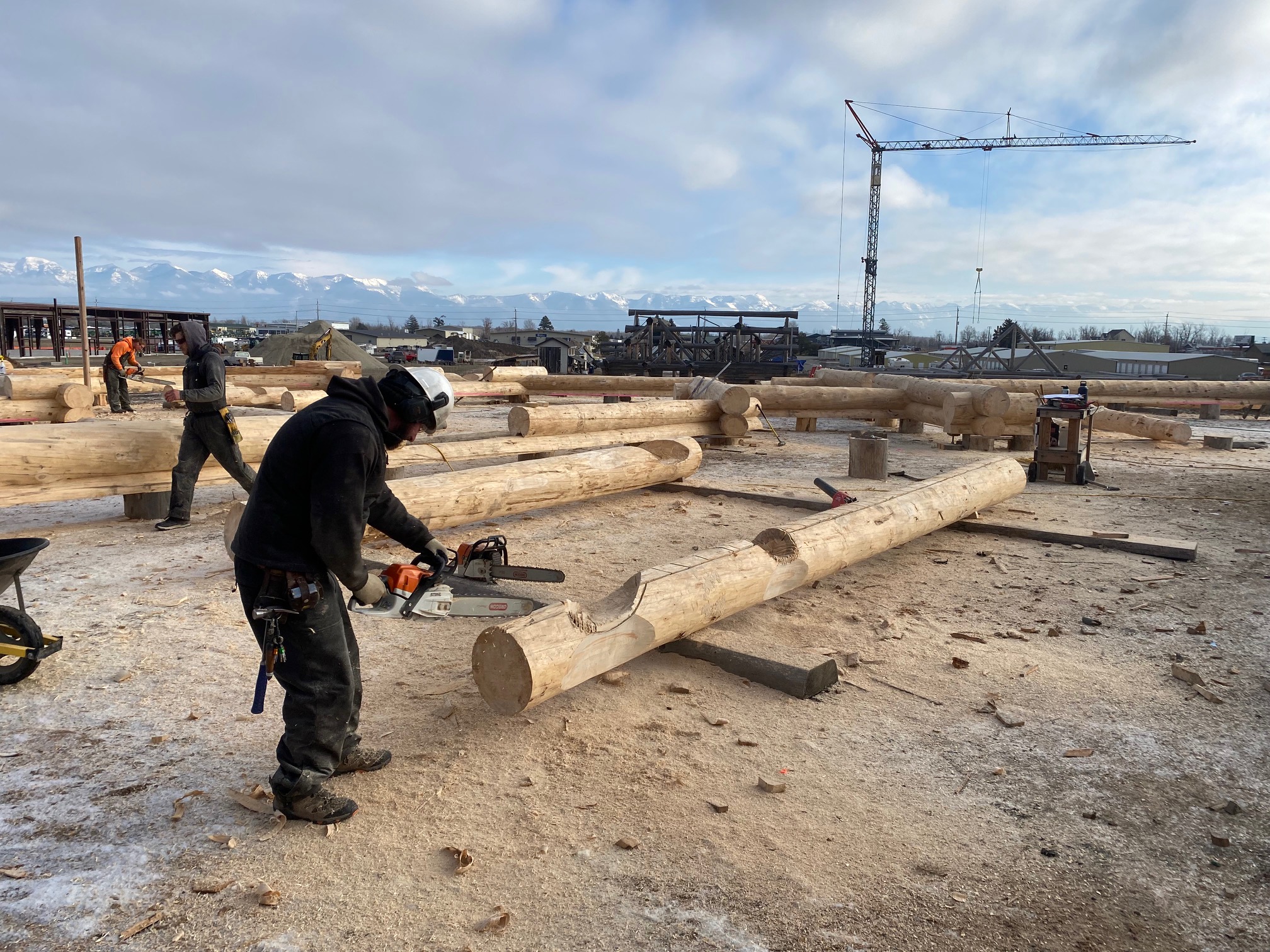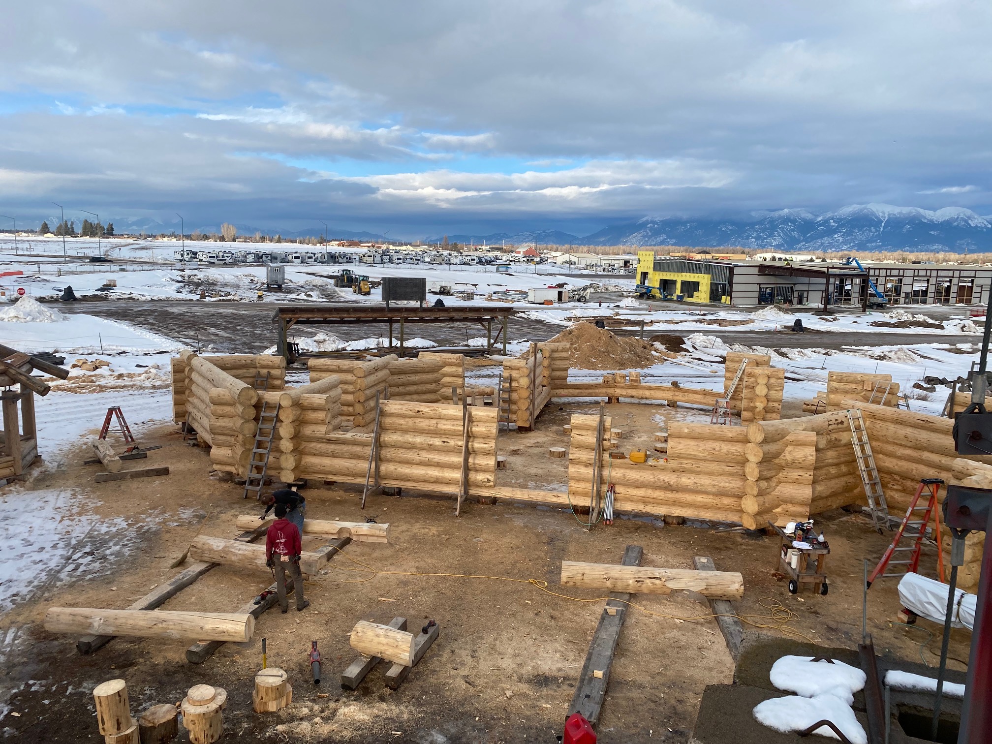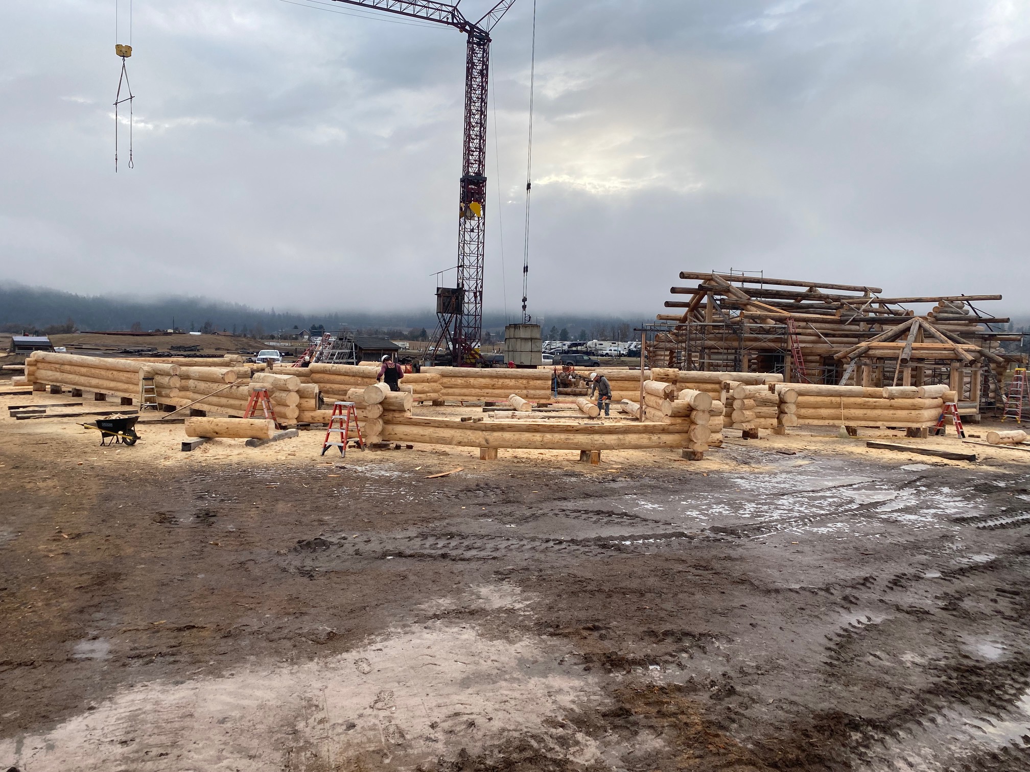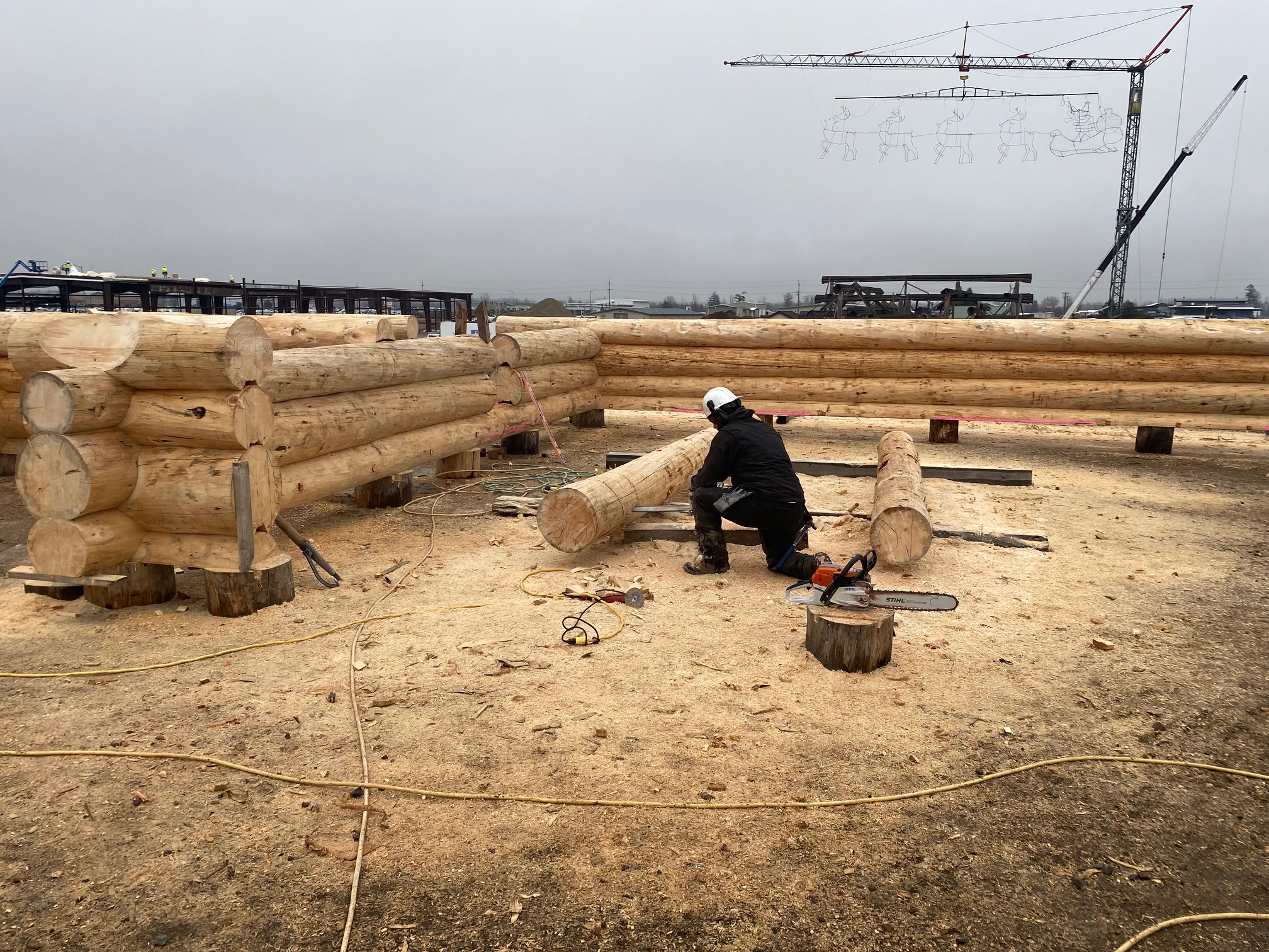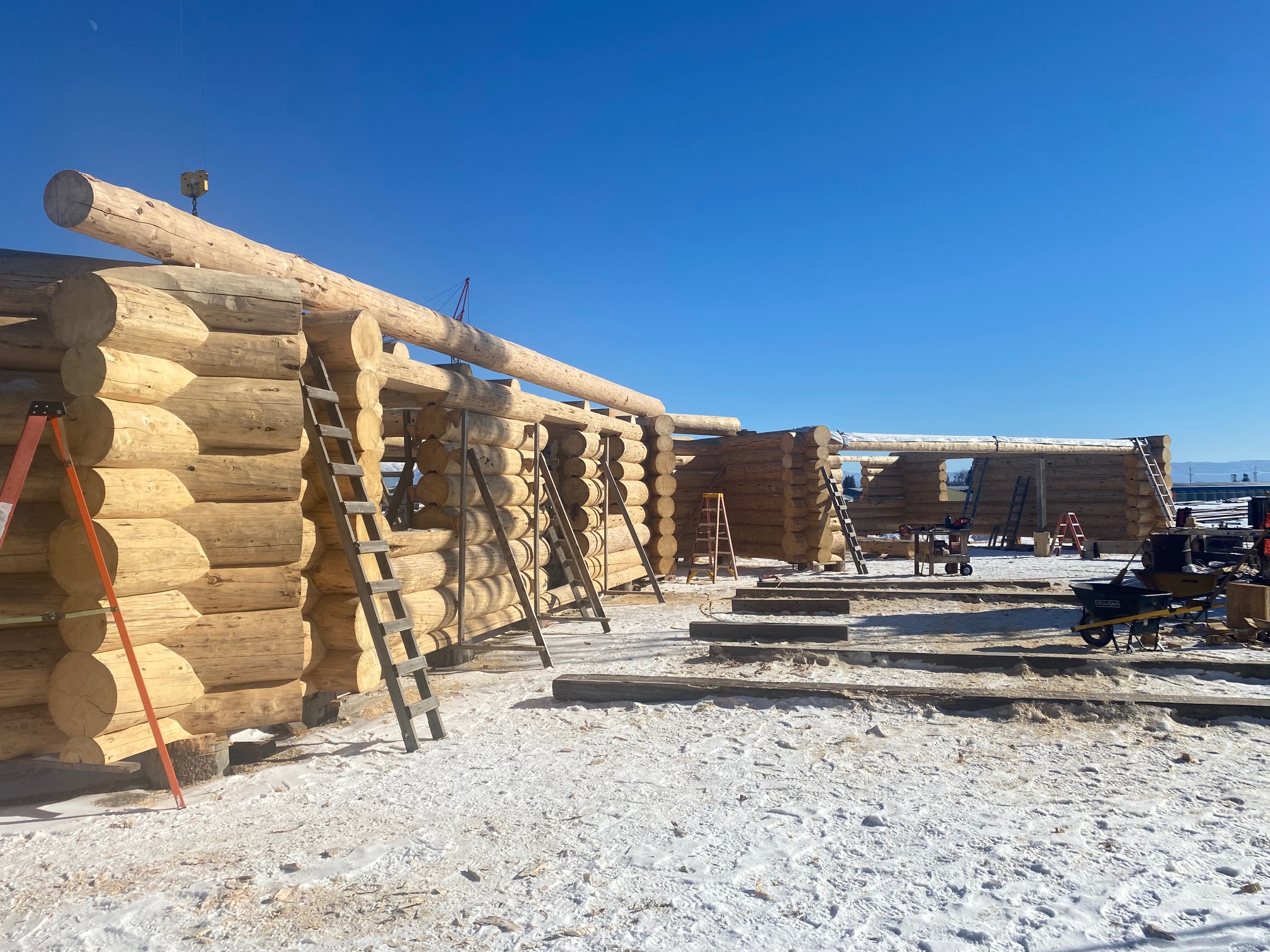 We are using dead standing 17″ to 21″ base diameter Engelmann Spruce logs for the construction. When completed it will be disassembled and transported to Colorado and re-assembled on a beautiful site.